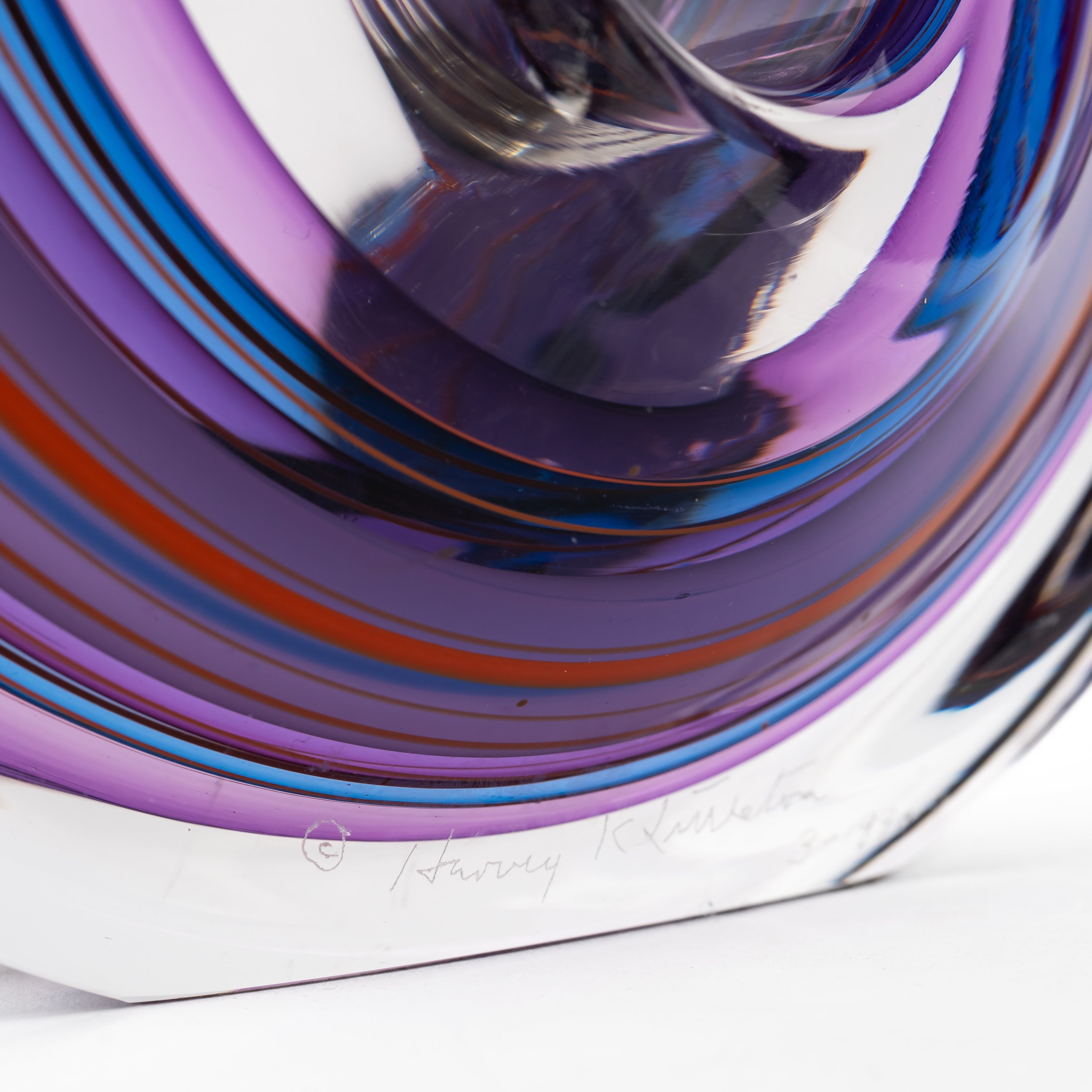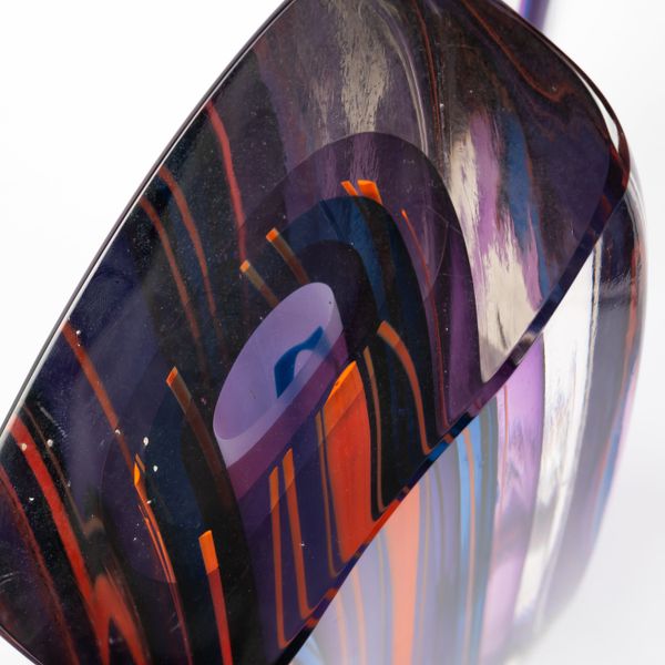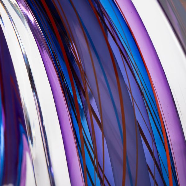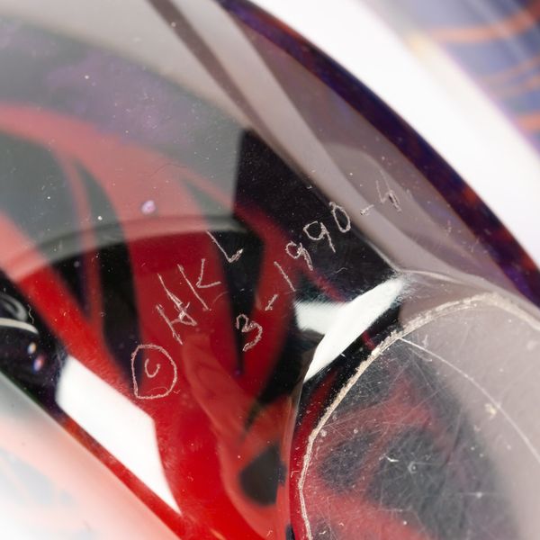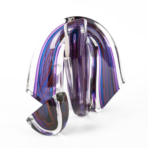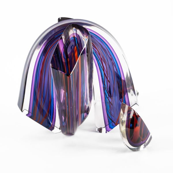 These series of cups are then pulled and distorted to form undulating sculptures whilst retaining the same relationship between the forms inside the sculpture. Littleton was interested in the use of colour but more so in the strength of the form, in the bending of the glass. The inherent frozen movement of the piece was an important factor in his work and is emanated perfectly within this sculpture.