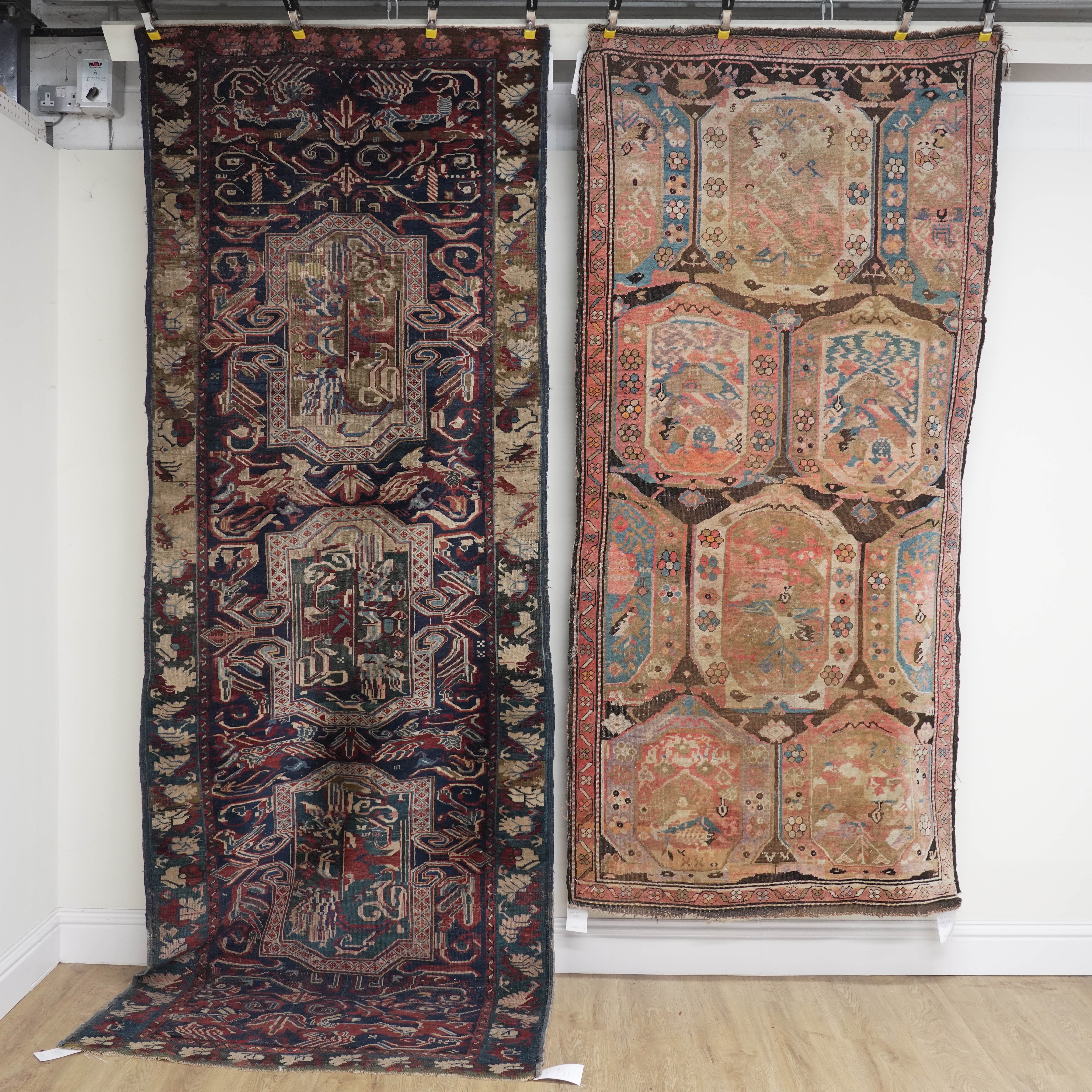 The Seychour runner - condition is fair, some repairs, some wear. the NW Persian rug - condition fair. Both need cleaning.