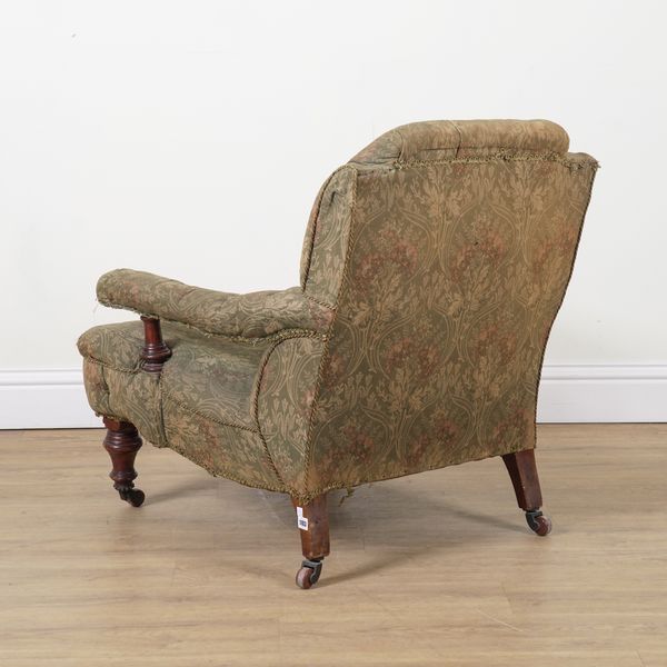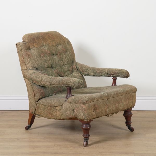 A VICTORIAN MAHOGANY FRAMED OPEN EASY ARMCHAIR