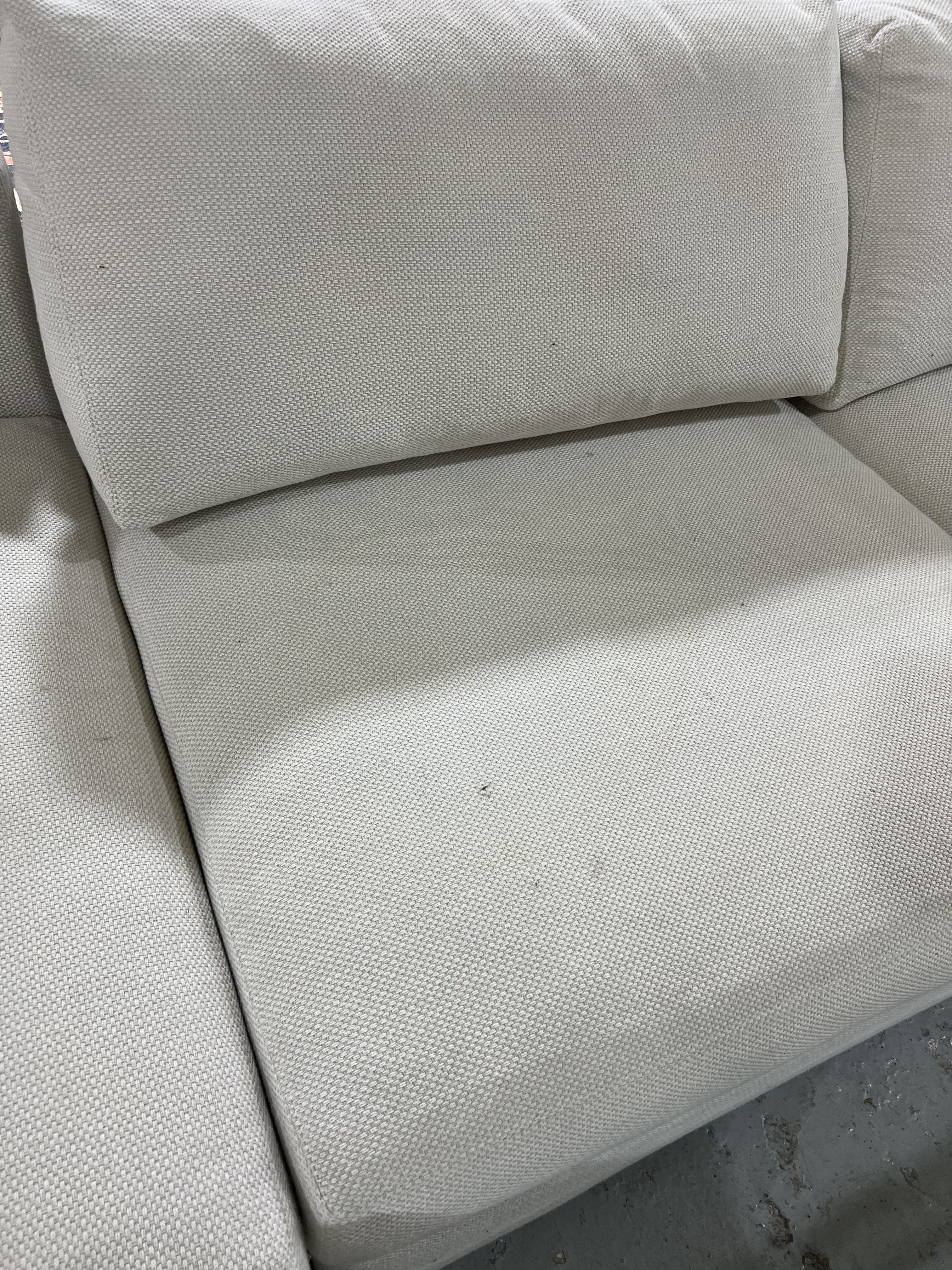 All cushions present for this lot, some marks to the back, and seat cushions, see images. seat covers can be removed and are foam seats.