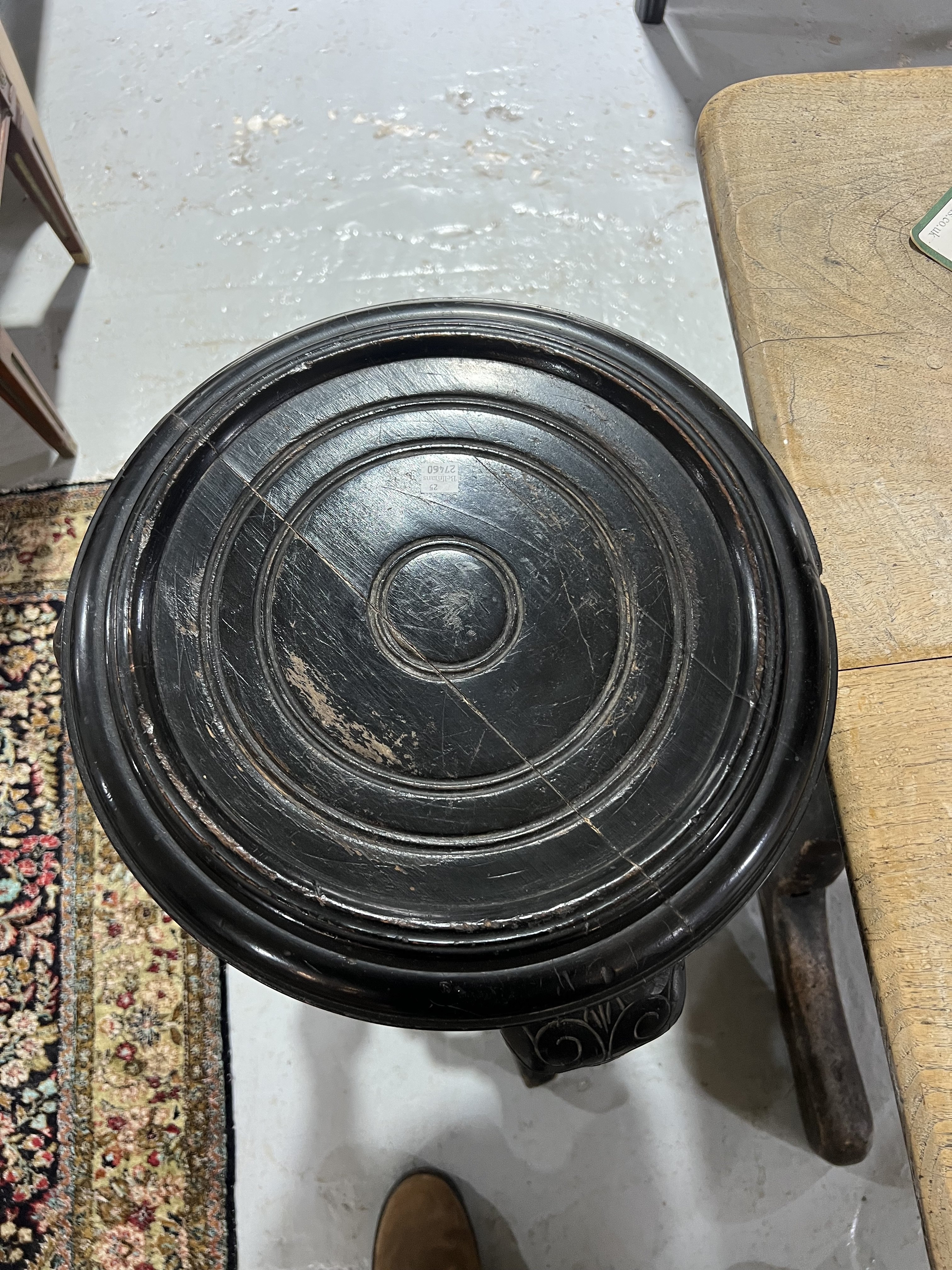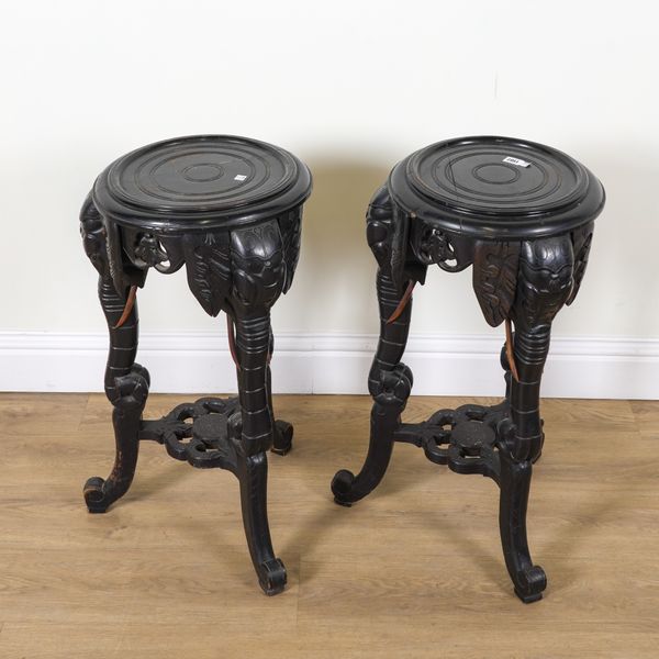 A PAIR OF EARLY 20TH CENTURY EBONISED CIRCULAR OCCASIONAL TABLES (2)