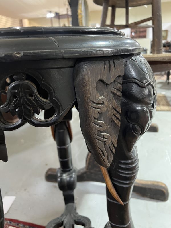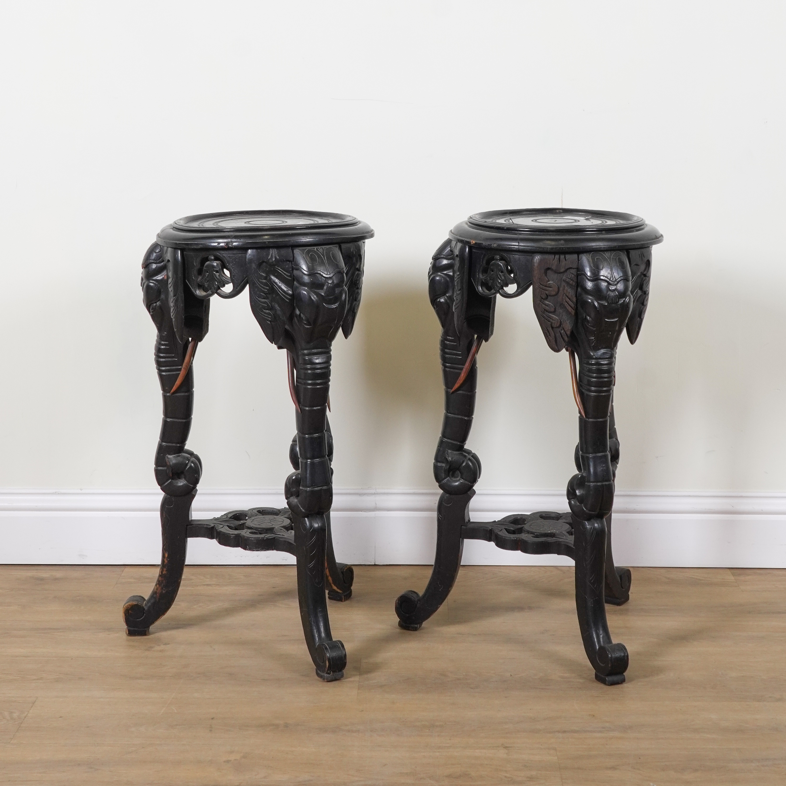 Each raised on a trio of elephant supports, 40cm diameter; 75cm high