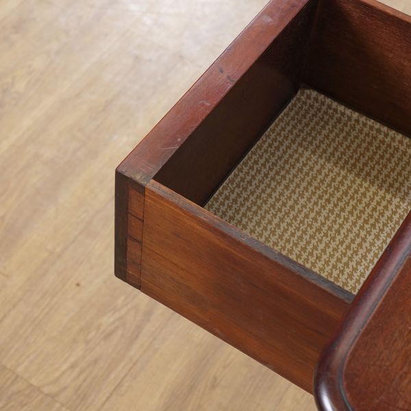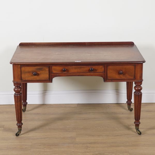 With three frieze drawers on tapering reeded supports, 121cm wide; 62cm deep; 76cm high