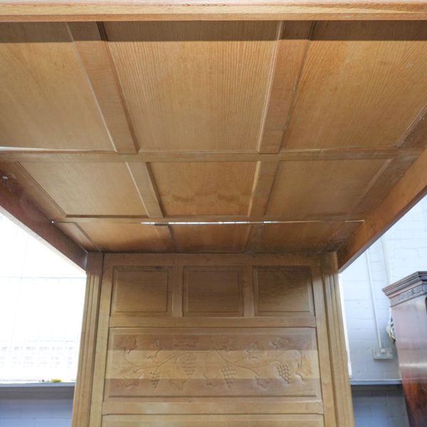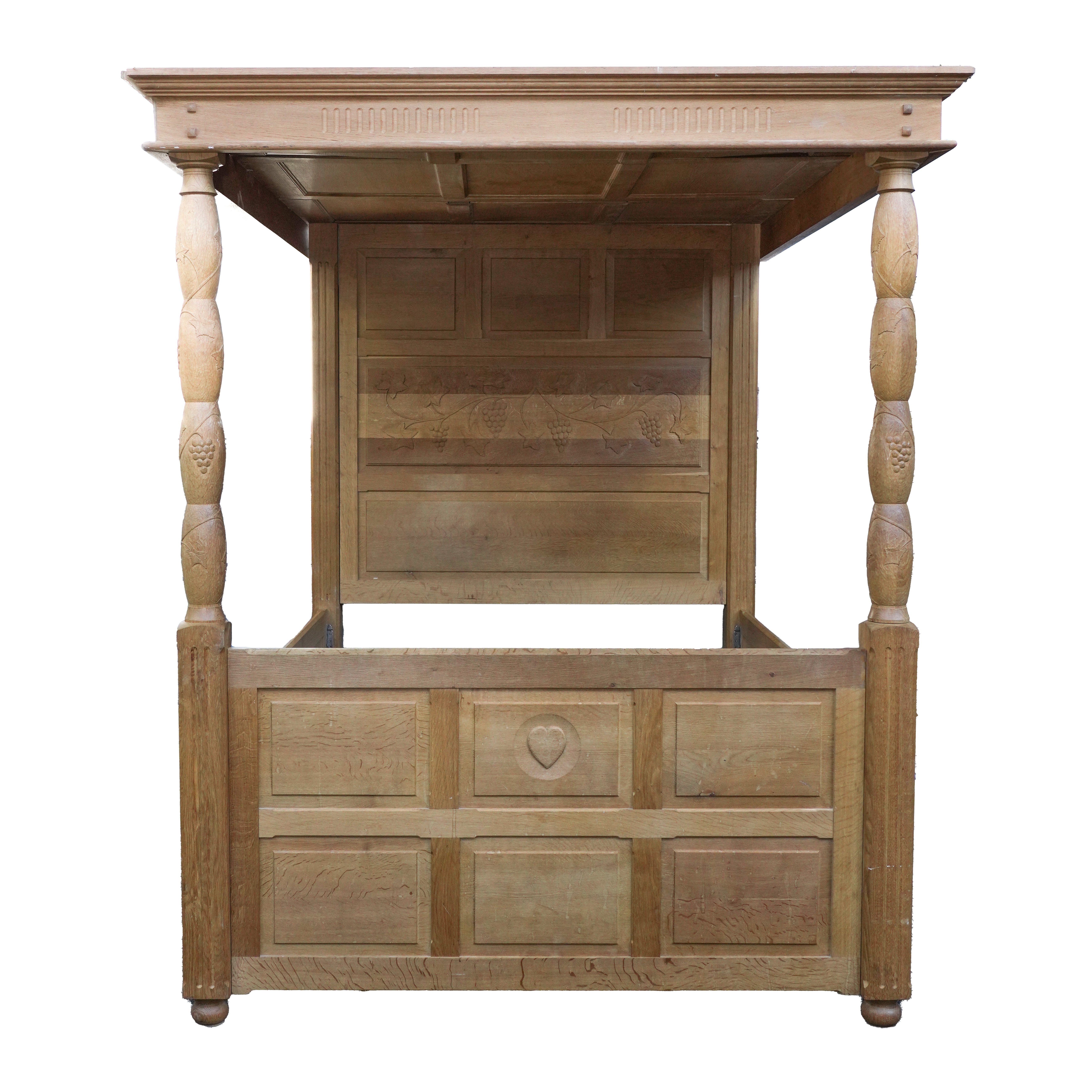 A HONEY OAK CARVED FOUR POSTER BED