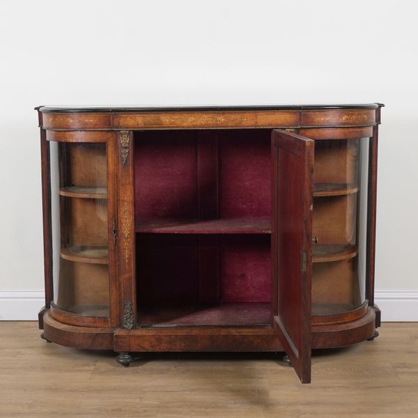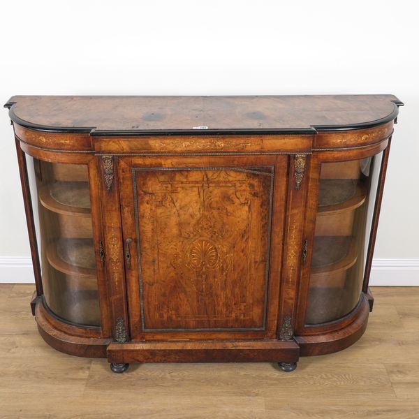 With panelled central door flanked by rounded glazed doors, 151cm wide; 39cm deep; 108cm high