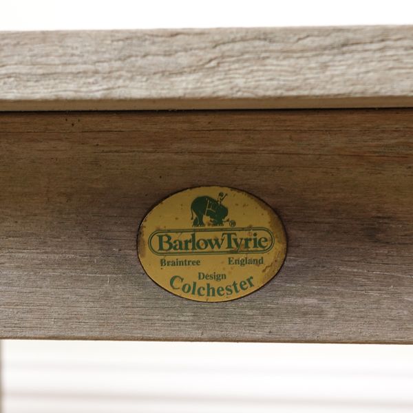 62cm wide; together with two square occasional tables by Barlow Tyrie, 55cm wide; 40cm high