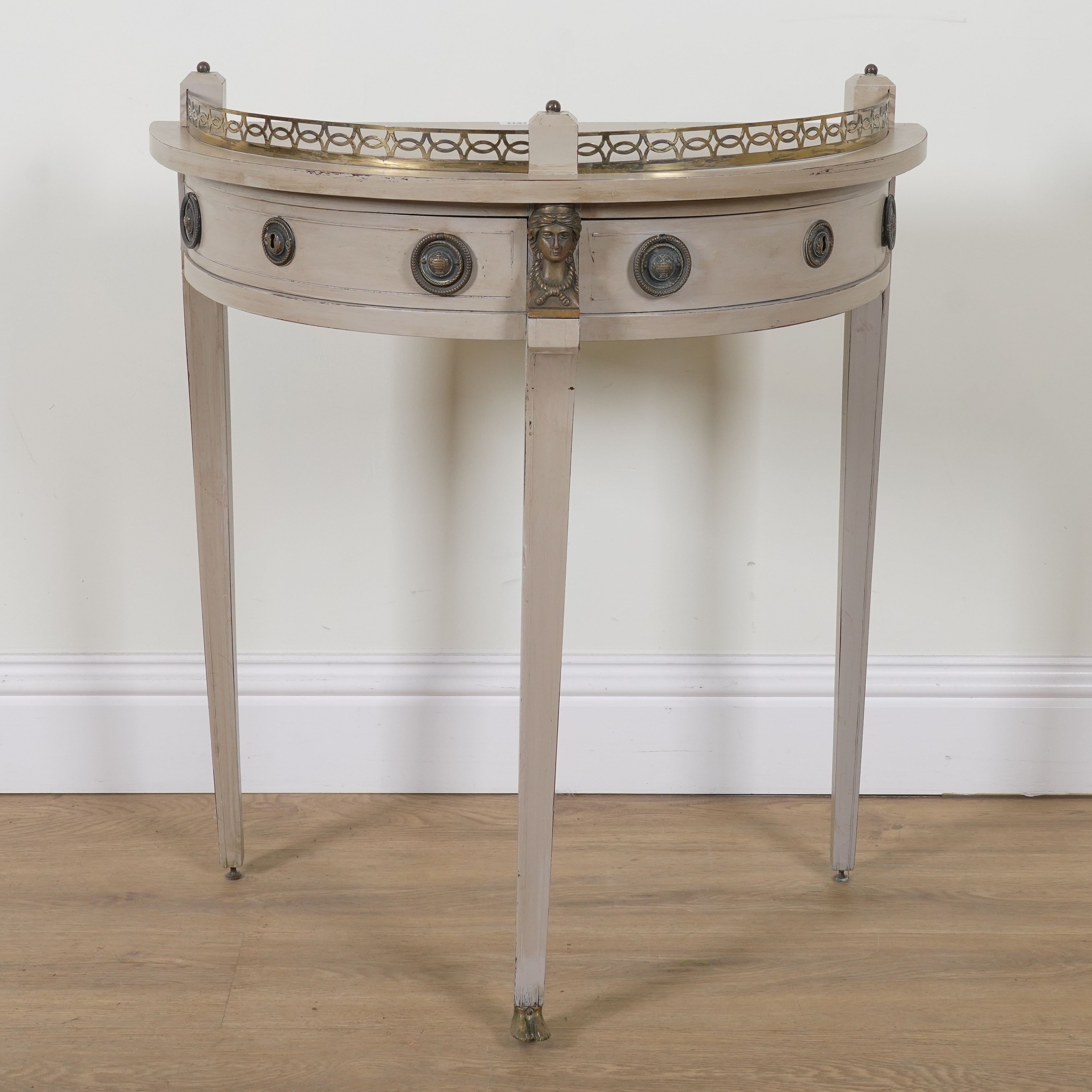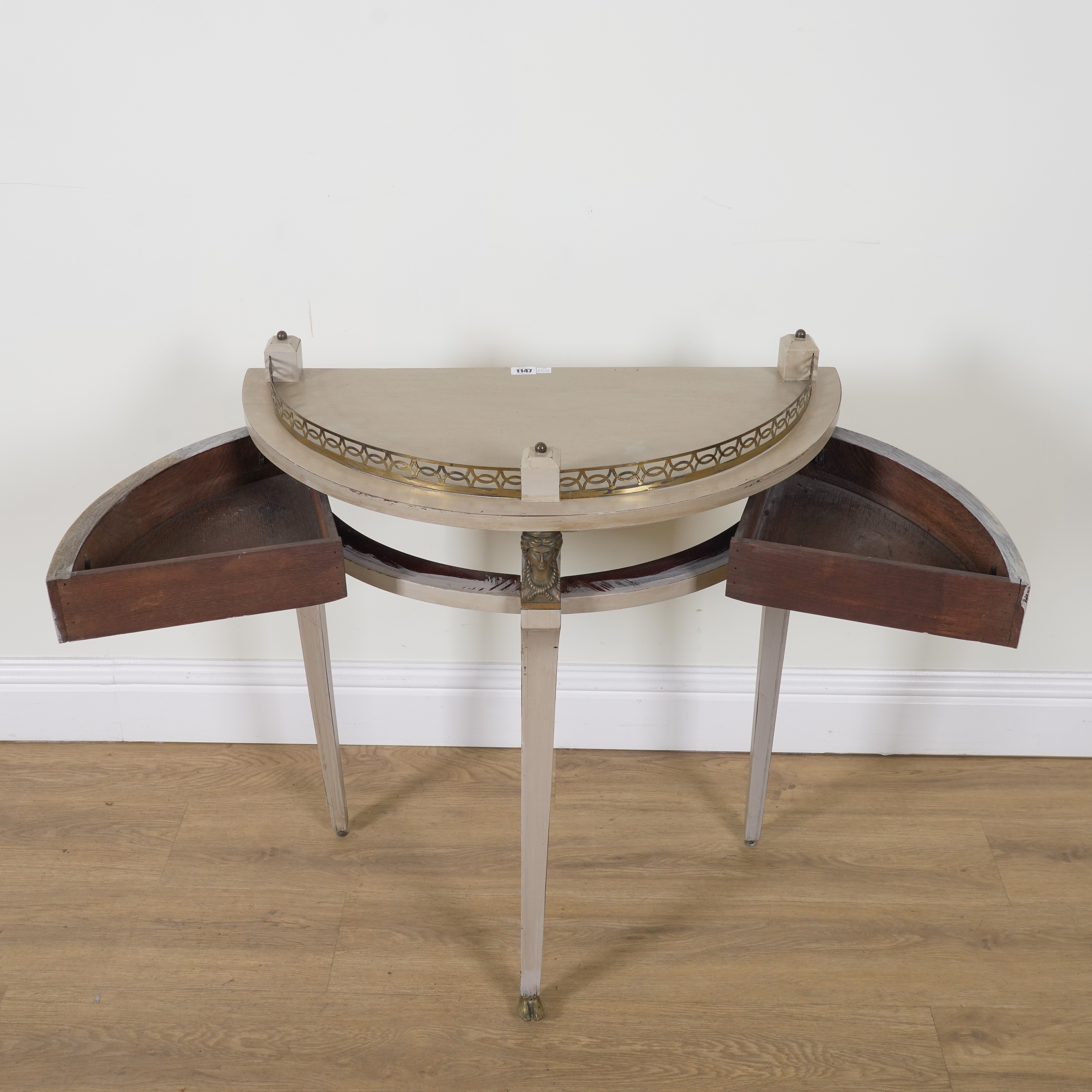 Later grey painted, with pair of swivel drawers on gilt metal mounted Egyptian caryatid supports, 73cm wide; 37cm deep; 82cm high