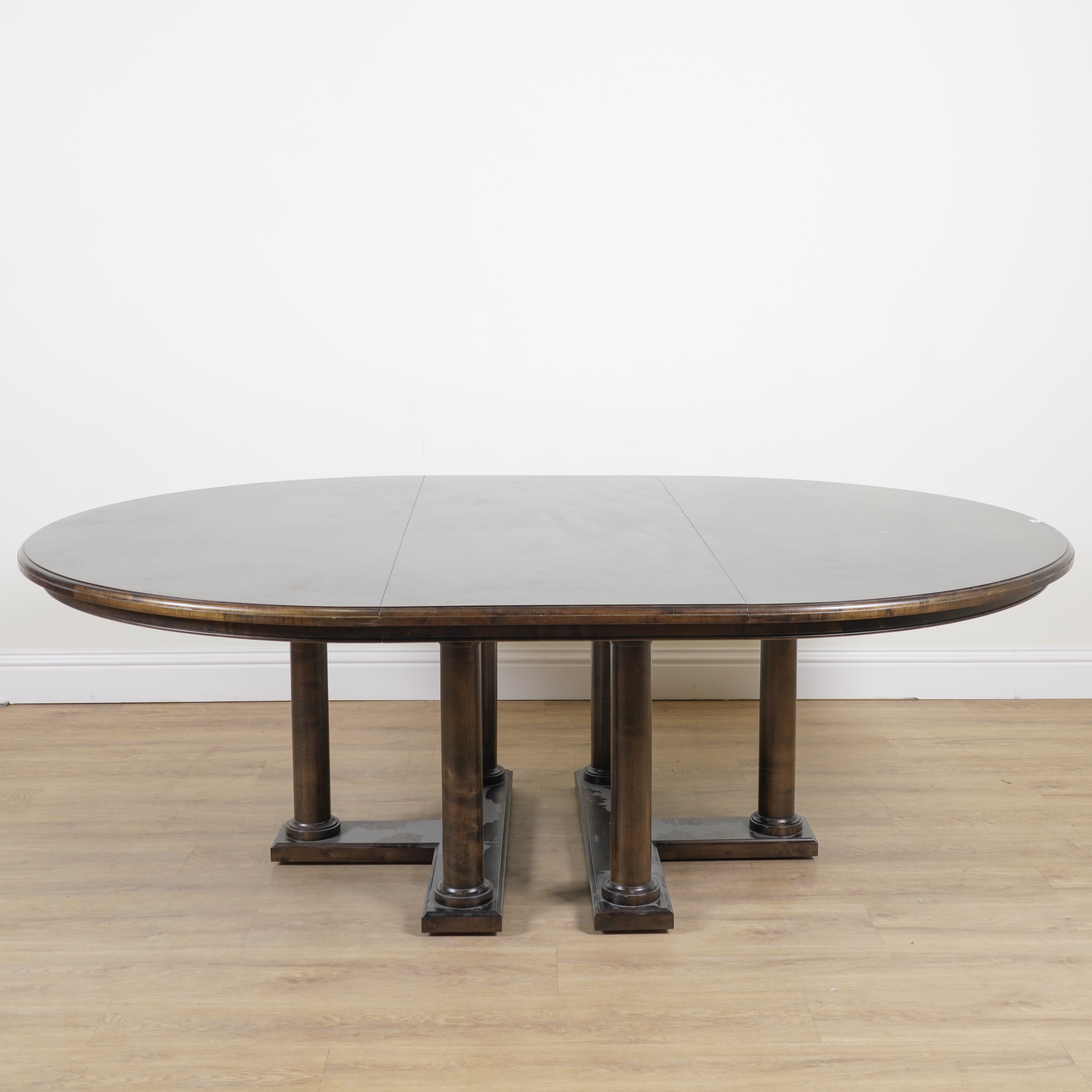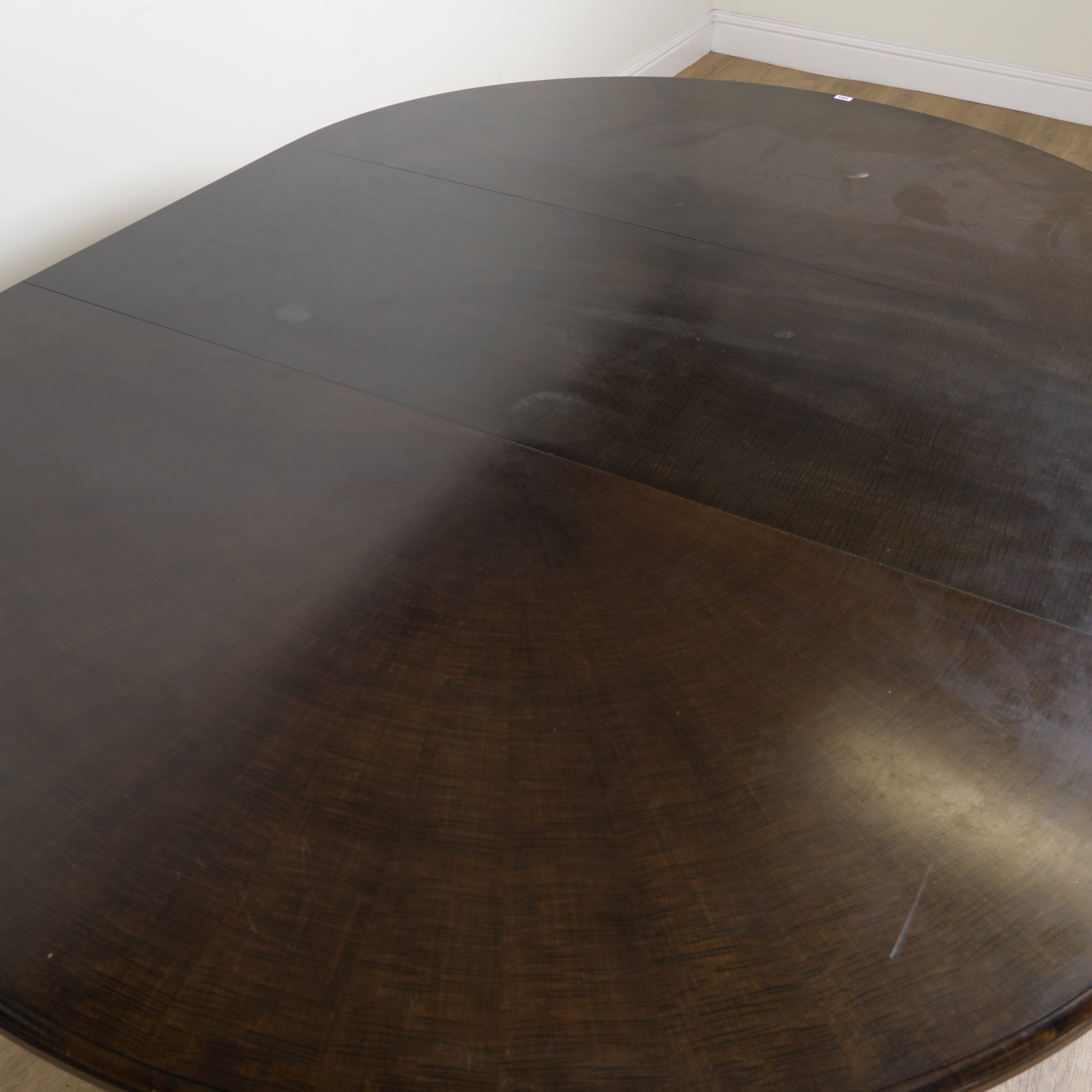 On six gun barrel turned supports, with one extra leaf, 115cm wide; 215cm long; 275cm long fully extended