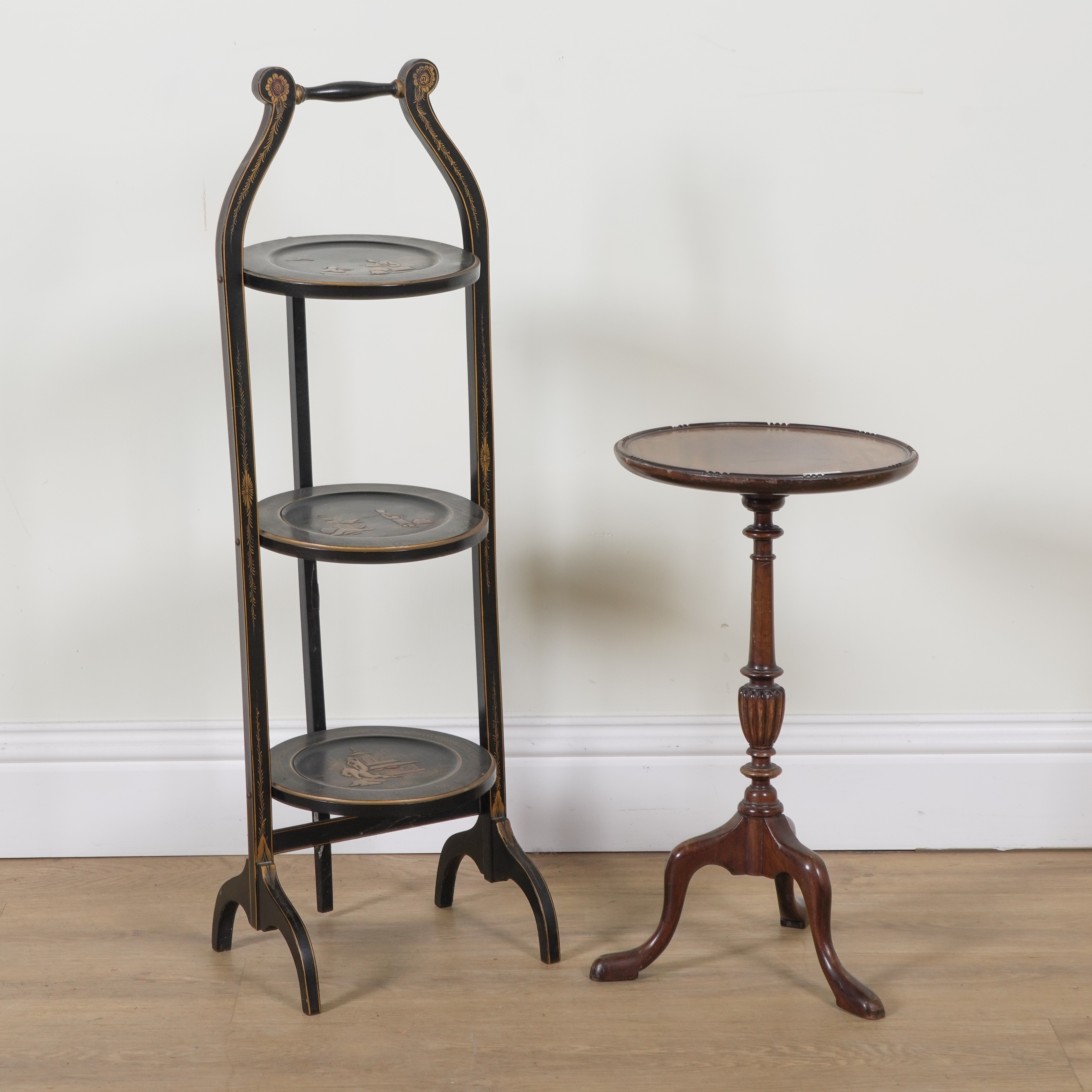 30cm wide; 93cm high, and an 18th century style mahogany tripod occasional table, 30cm diameter; 54cm high