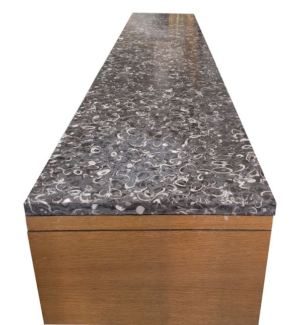 With five central drawers flanked by cupboard doors, 250cm wide; 50cm deep; 80cm high