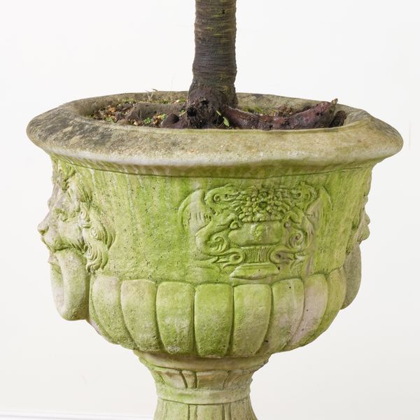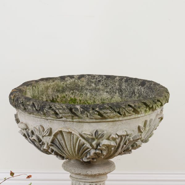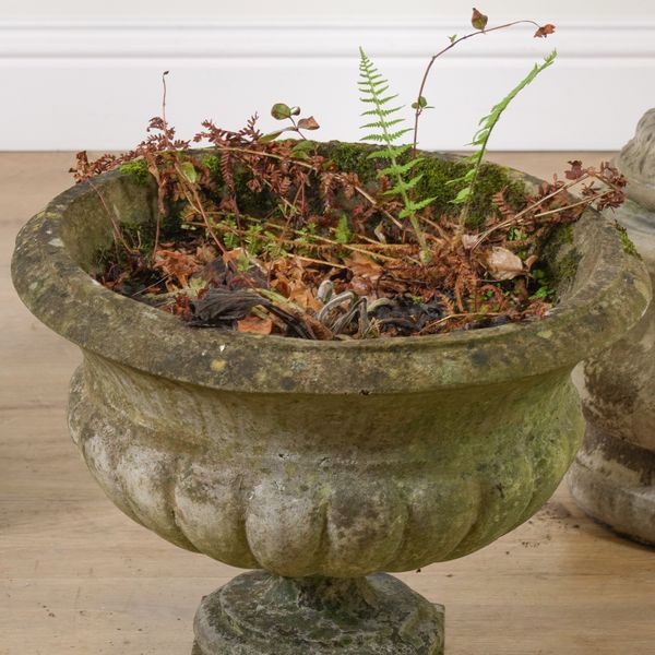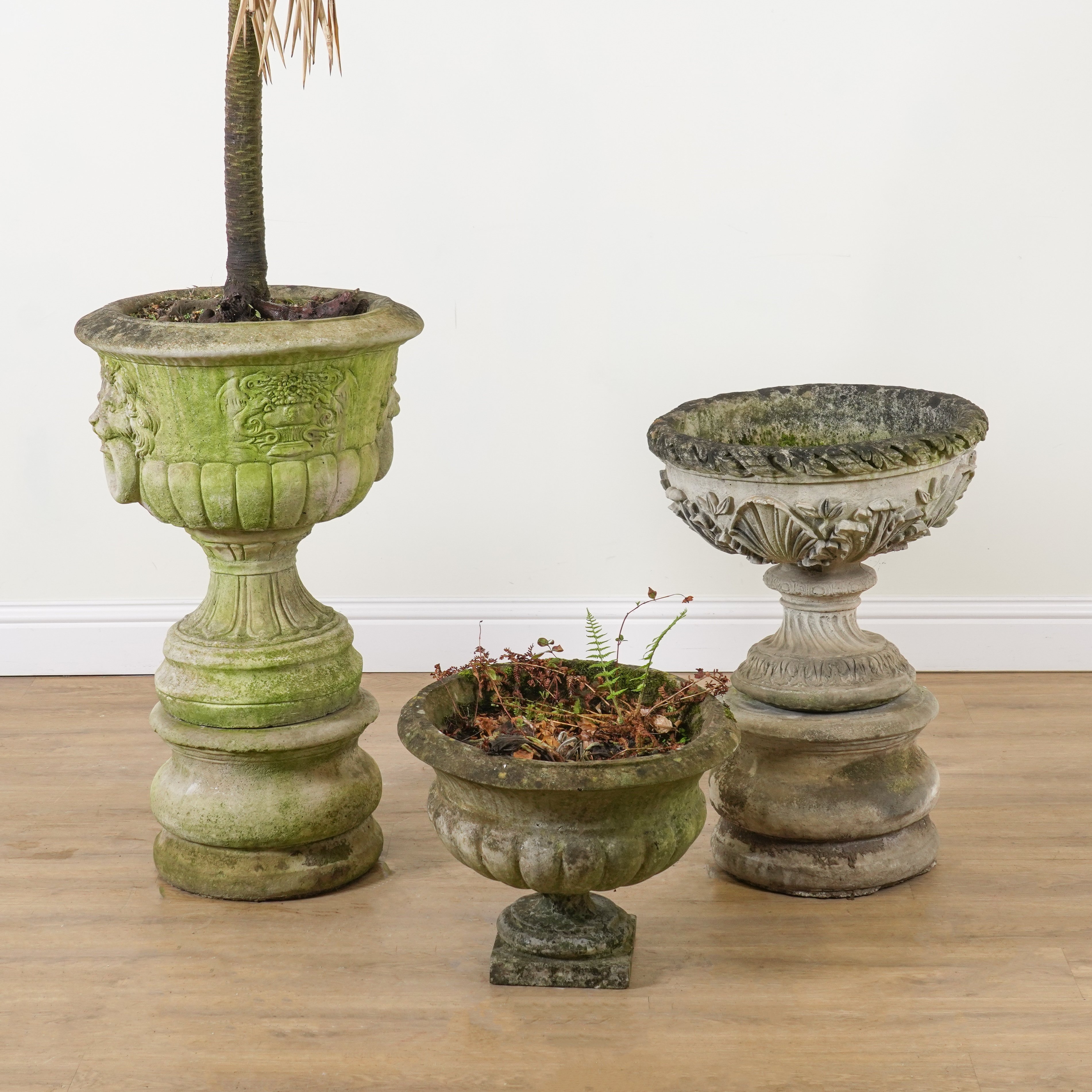 The tallest 68cm high, together with two reconstituted stone circular pedestals, 38cm diameter; 29cm high