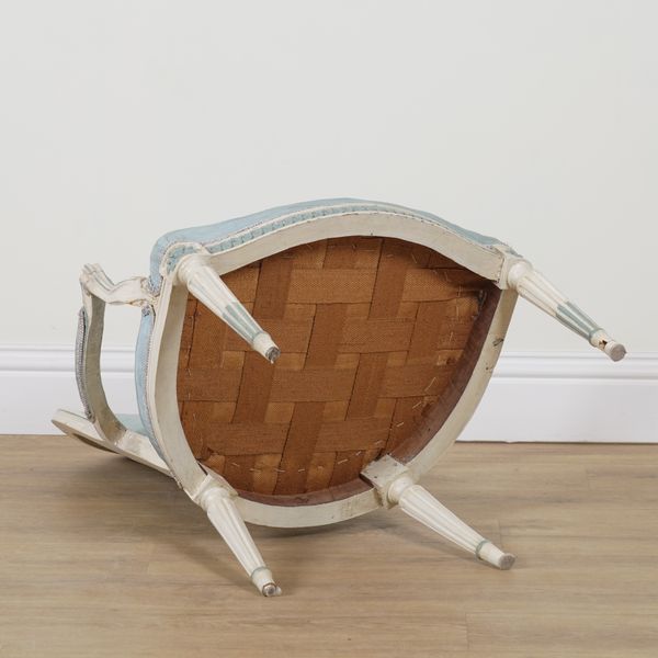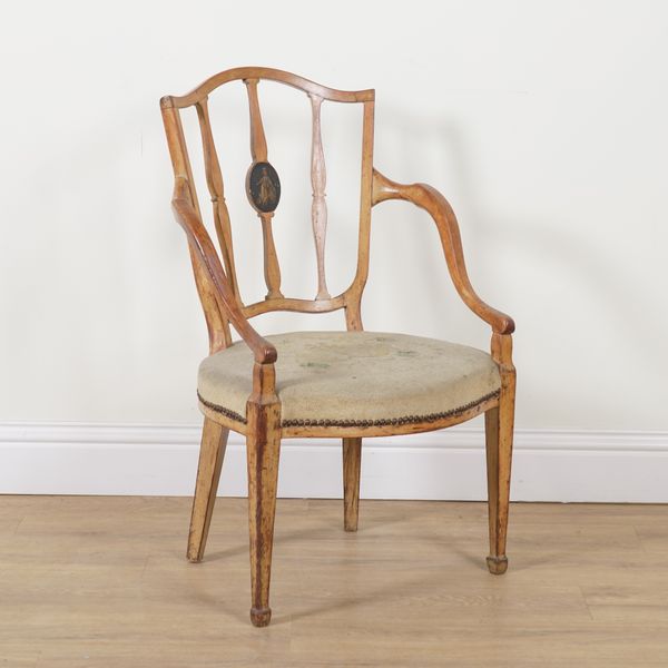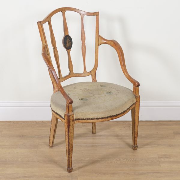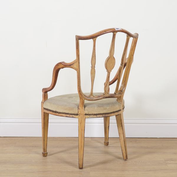 A GEORGE III PAINTED BEECH OPEN ARMCHAIR (2)