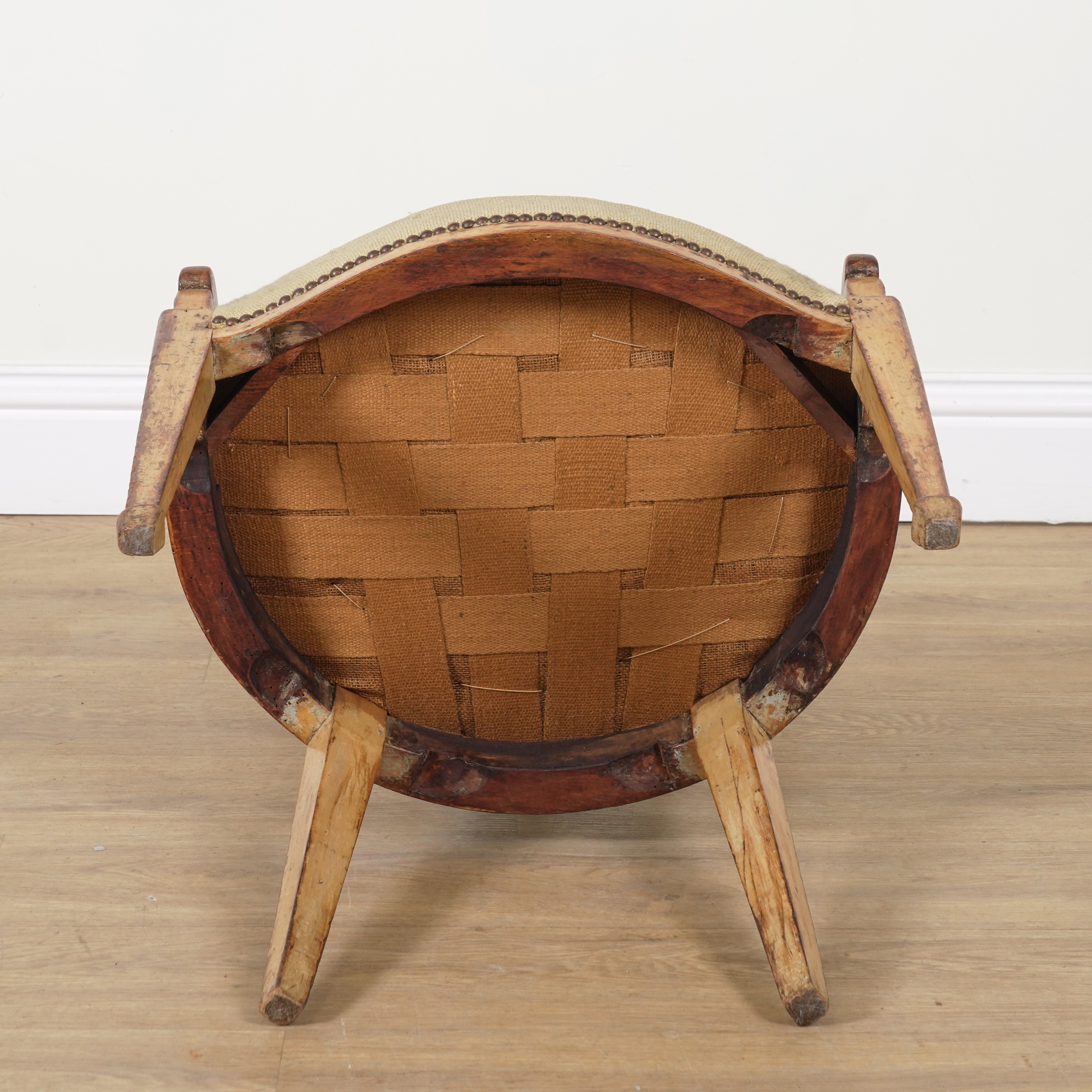 With bow seat on tapering square supports, 57cm wide; 91cm high, together with a Louis XVI style white painted open armchair, circa 1900, 60cm wide; 87cm high
