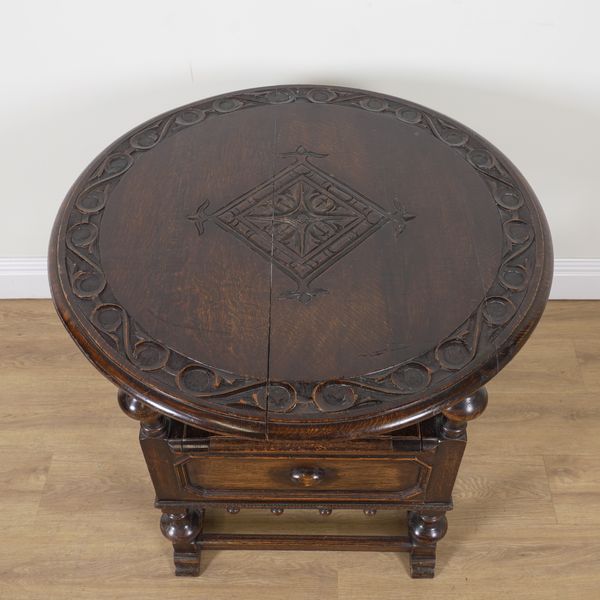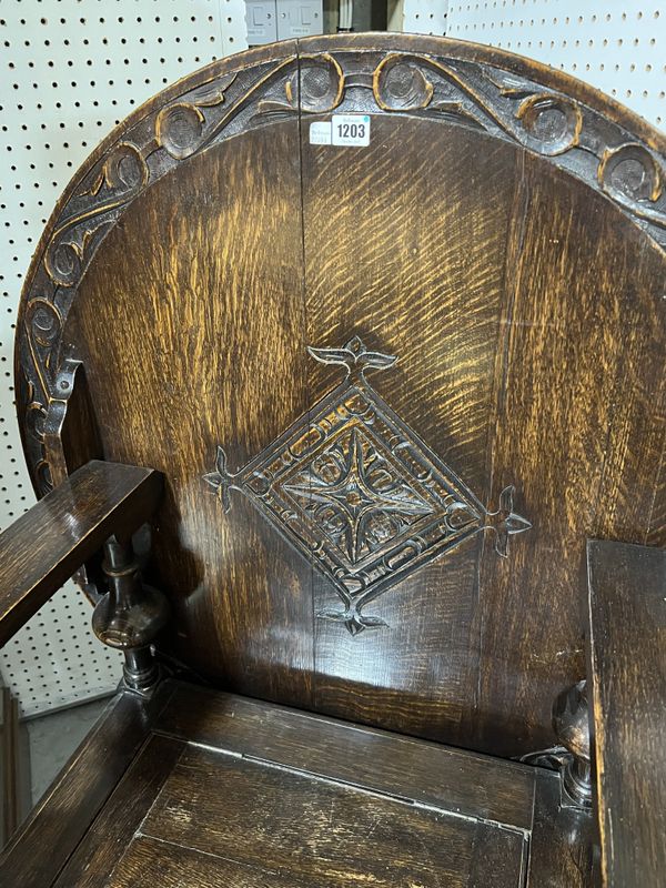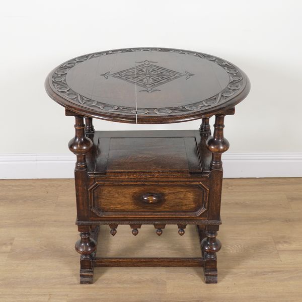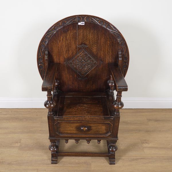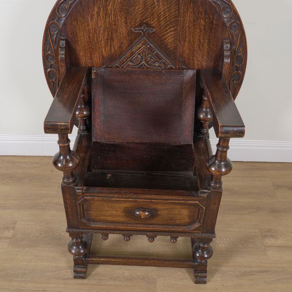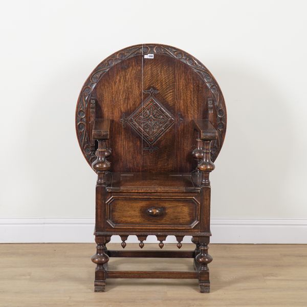 Mid 20th century, the revolving top over open arms and box seat, 82cm diameter; 83cm high; 121cm high in the open position