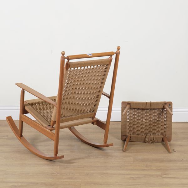 AFM JAPAN; A MID 20TH CENTURY FRUITWOOD OPEN ARM ROCKING CHAIR (2)