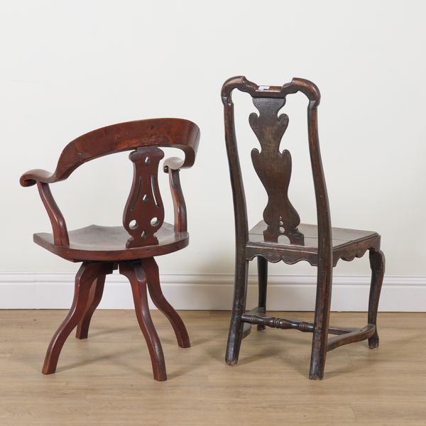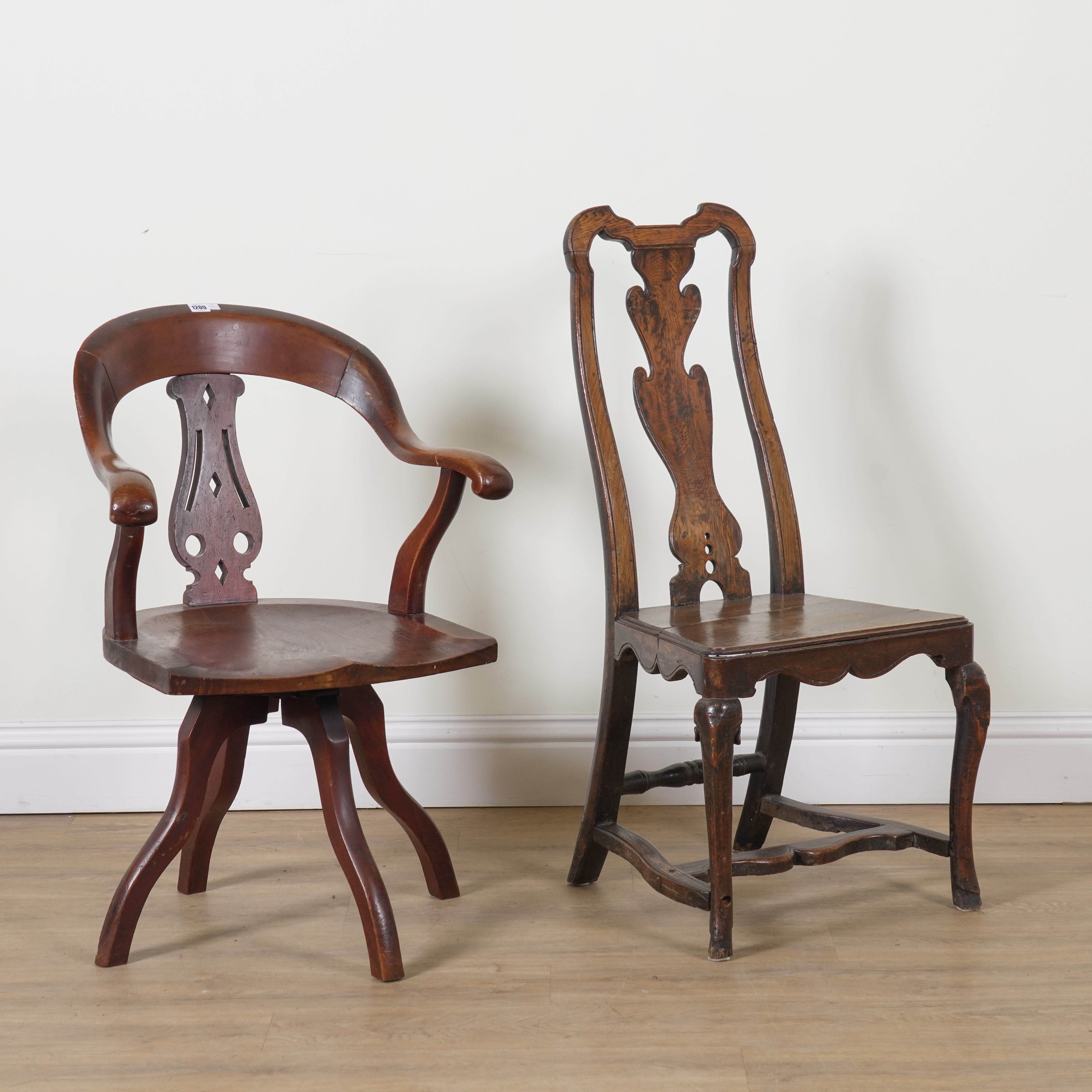 62cm wide; 90cm high, together with a Queen Anne oak vase back side chair, 51cm wide; 104cm high