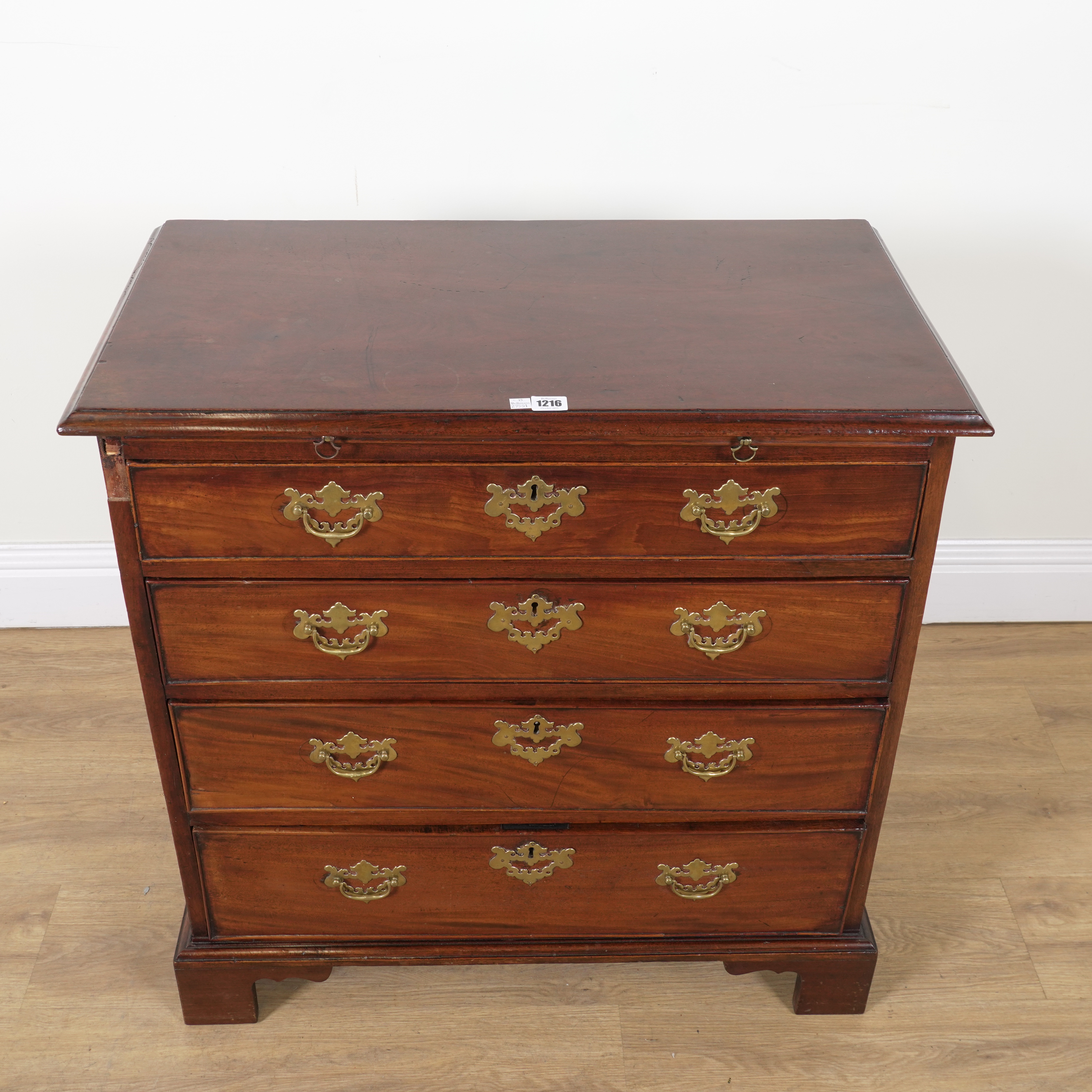 With brushing slide over four long graduated drawers, 81cm wide; 42cm deep; 83cm high