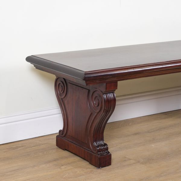 IN THE MANNER OF WILLIAM KENT; A PAIR OF LATE 20TH CENTURY RECTANGULAR MAHOGANY BENCHES | FROM THE NATIONAL GALLERY, LONDON (2)