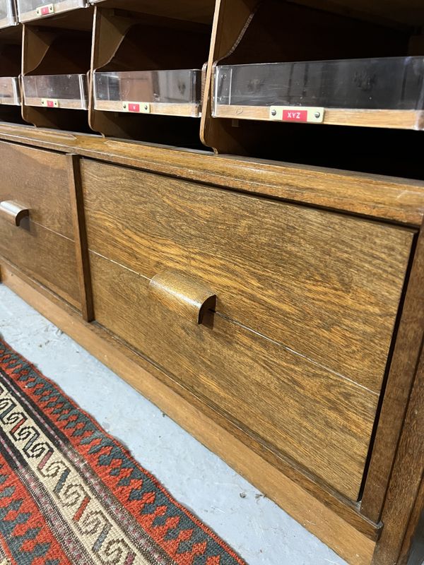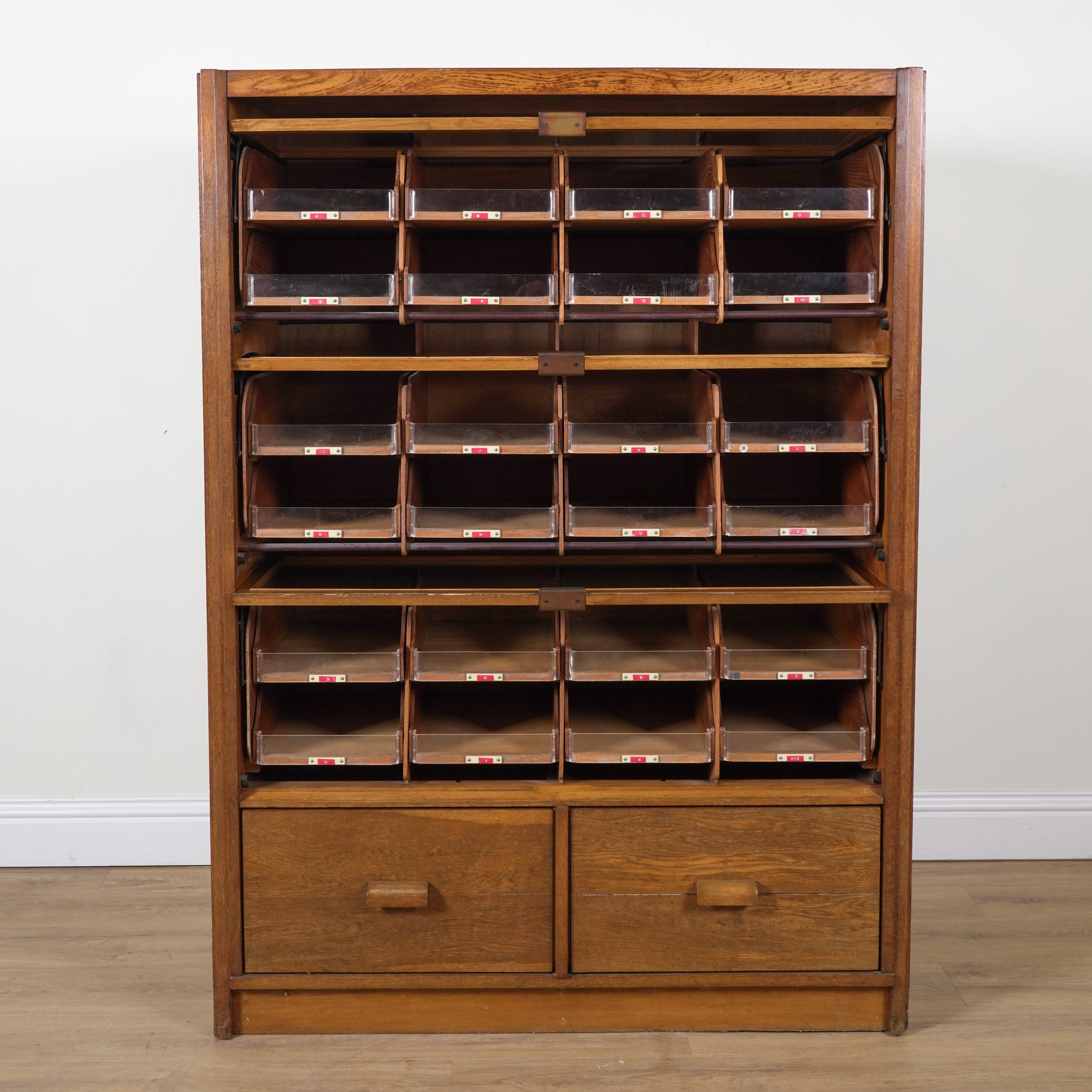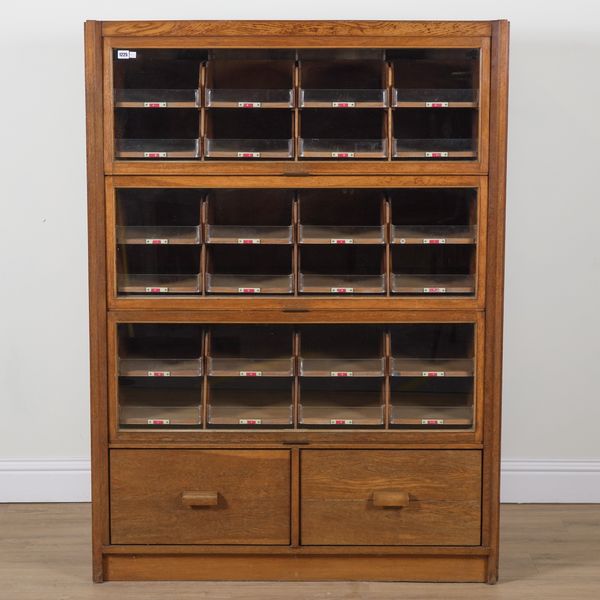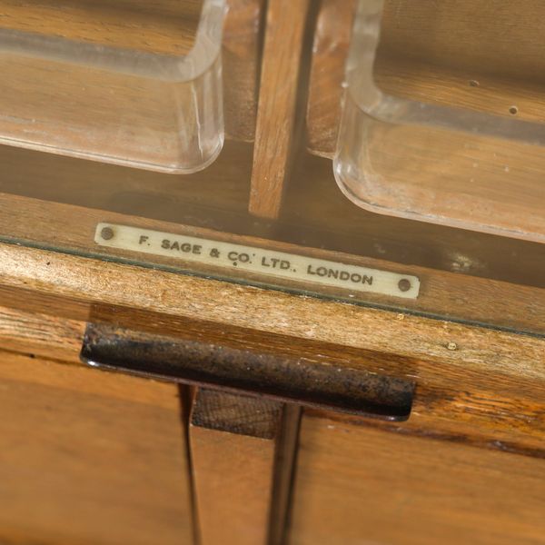 F. SAGE AND CO LTD LONDON; A MID 20TH CENTURY OAK HABERDASHERY CABINET