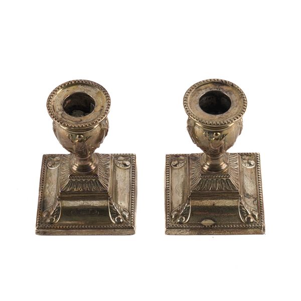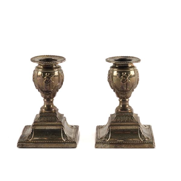 A PAIR OF VICTORIAN SQUAT CANDLESTICKS (2)