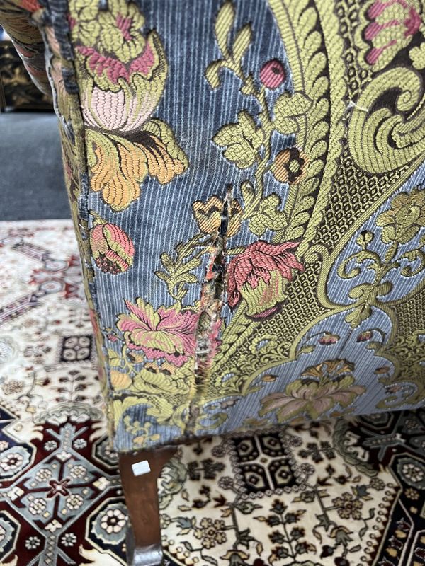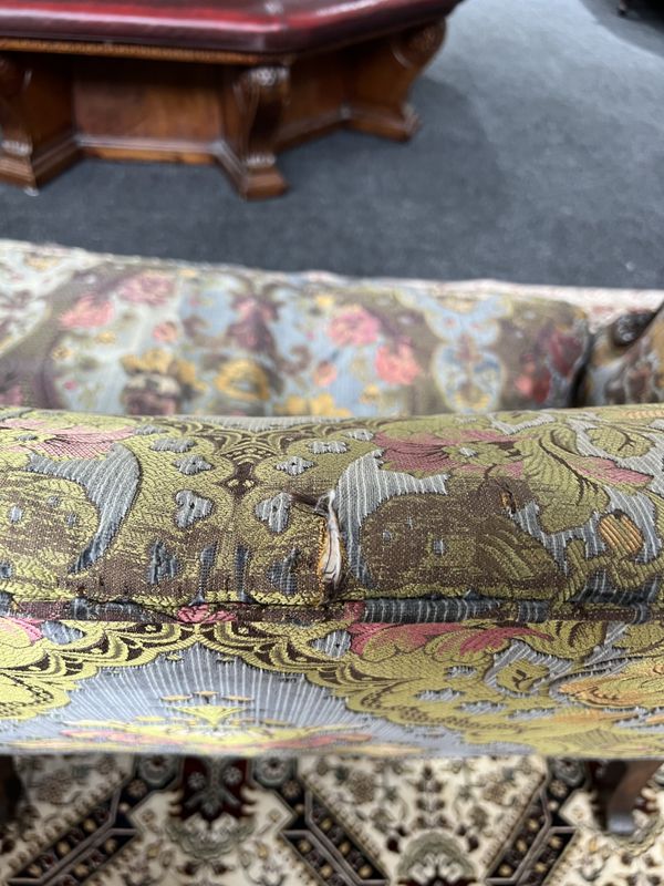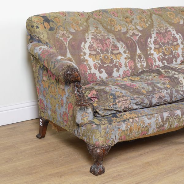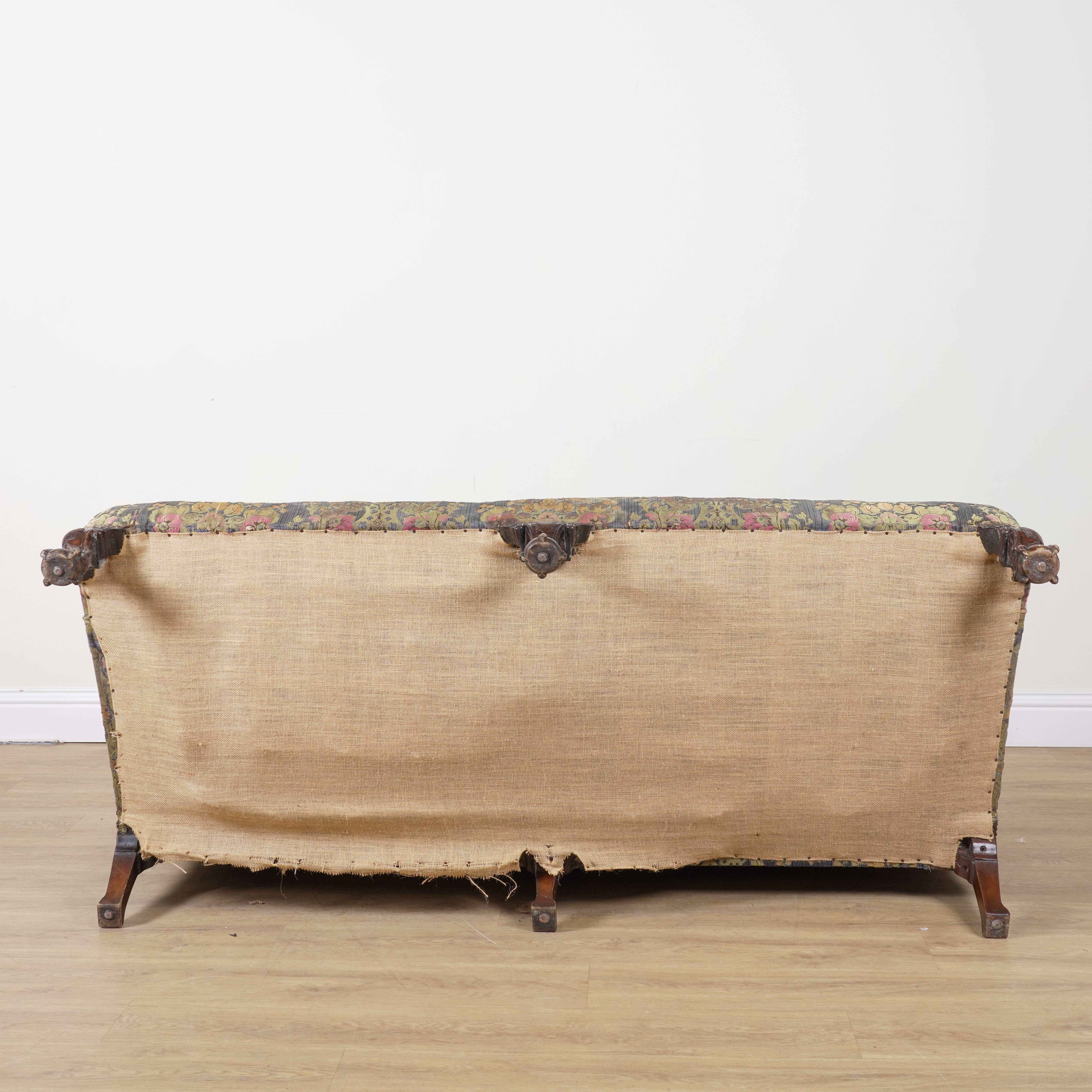 A GEORGE II STYE WALNUT FRAMED TRIPLE HUMP BACK SOFA