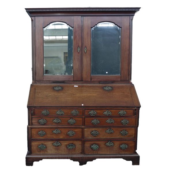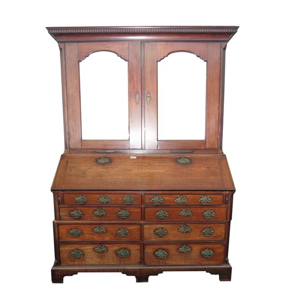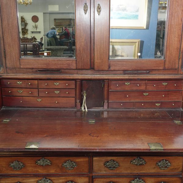 AN UNUSUAL OVERSIZED MID 18TH CENTURY MAHOGANY TRIPLE SECTION BUREAU CABINET