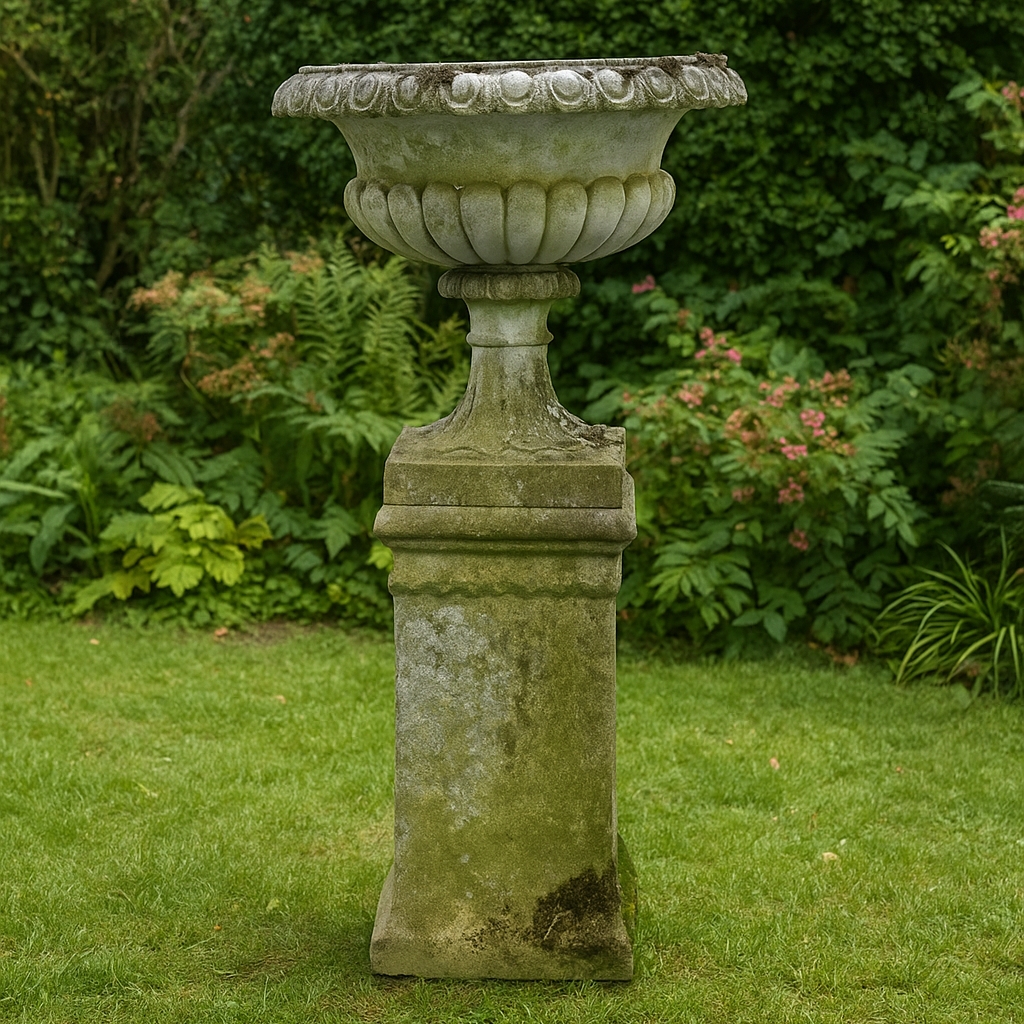On flared socle and square pedestal, 70cm diameter; 127cm high