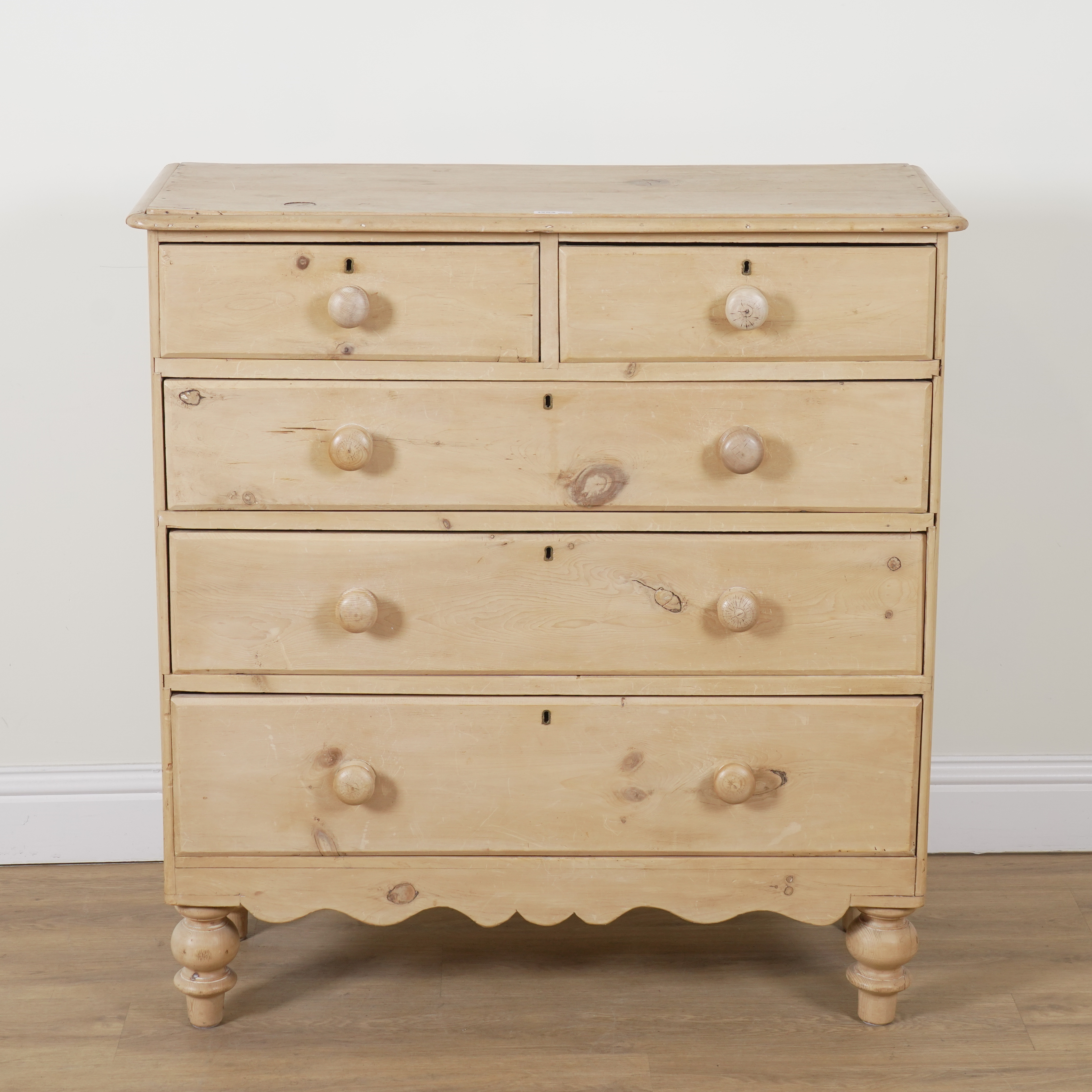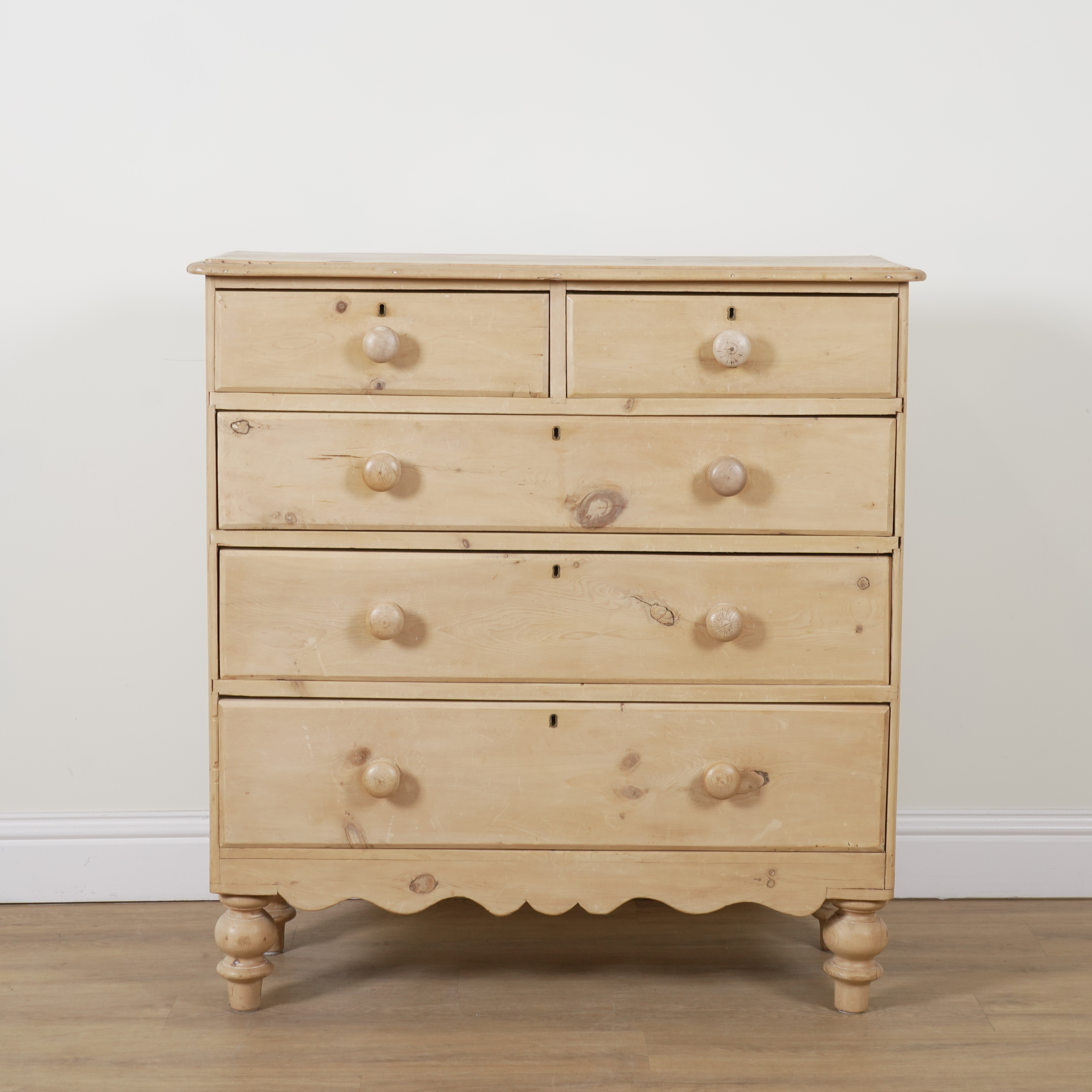 With two short over three long graduated drawers, 106cm wide; 45cm deep; 112cm high