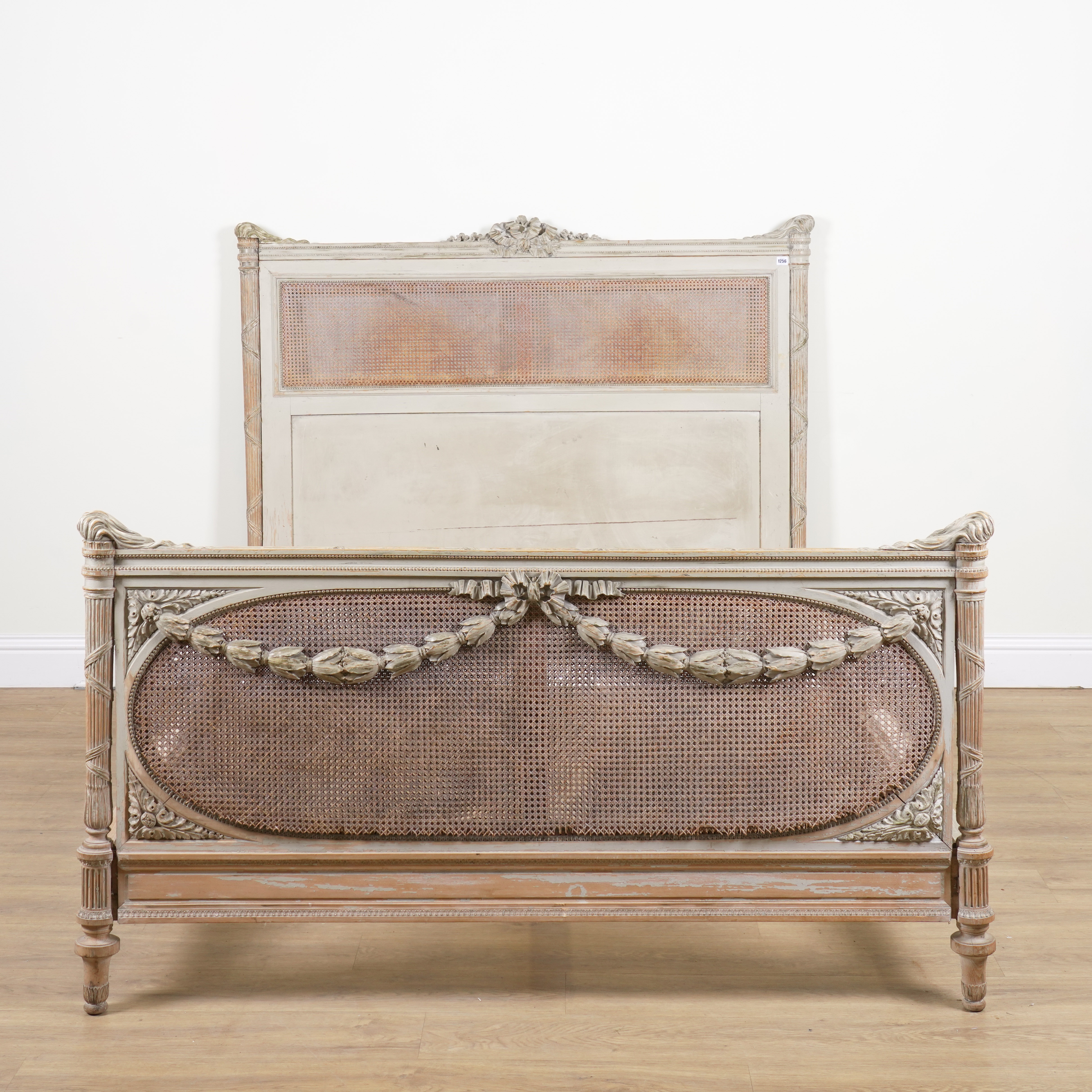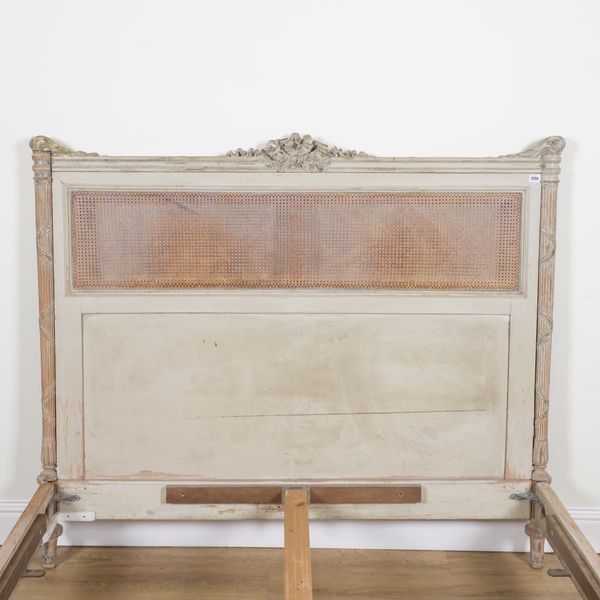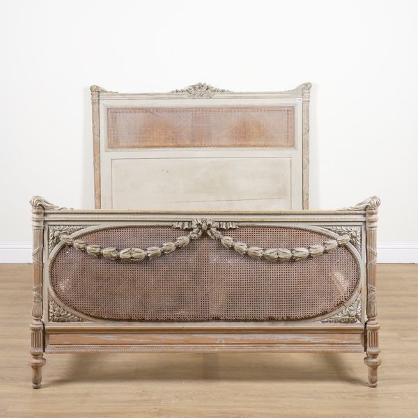 A FRENCH GREY PAINTED CARVED WOOD DOUBLE BED