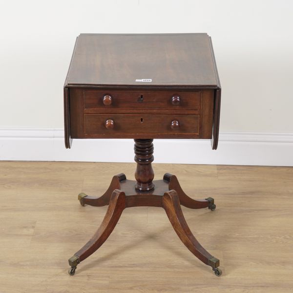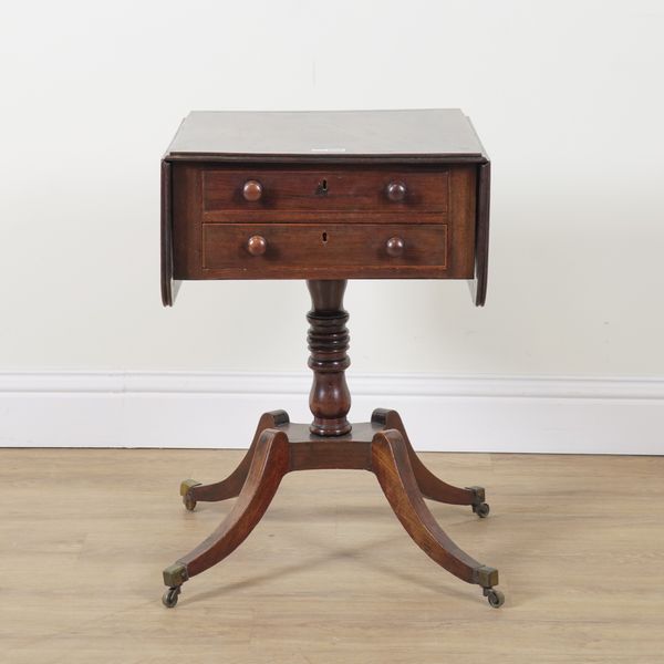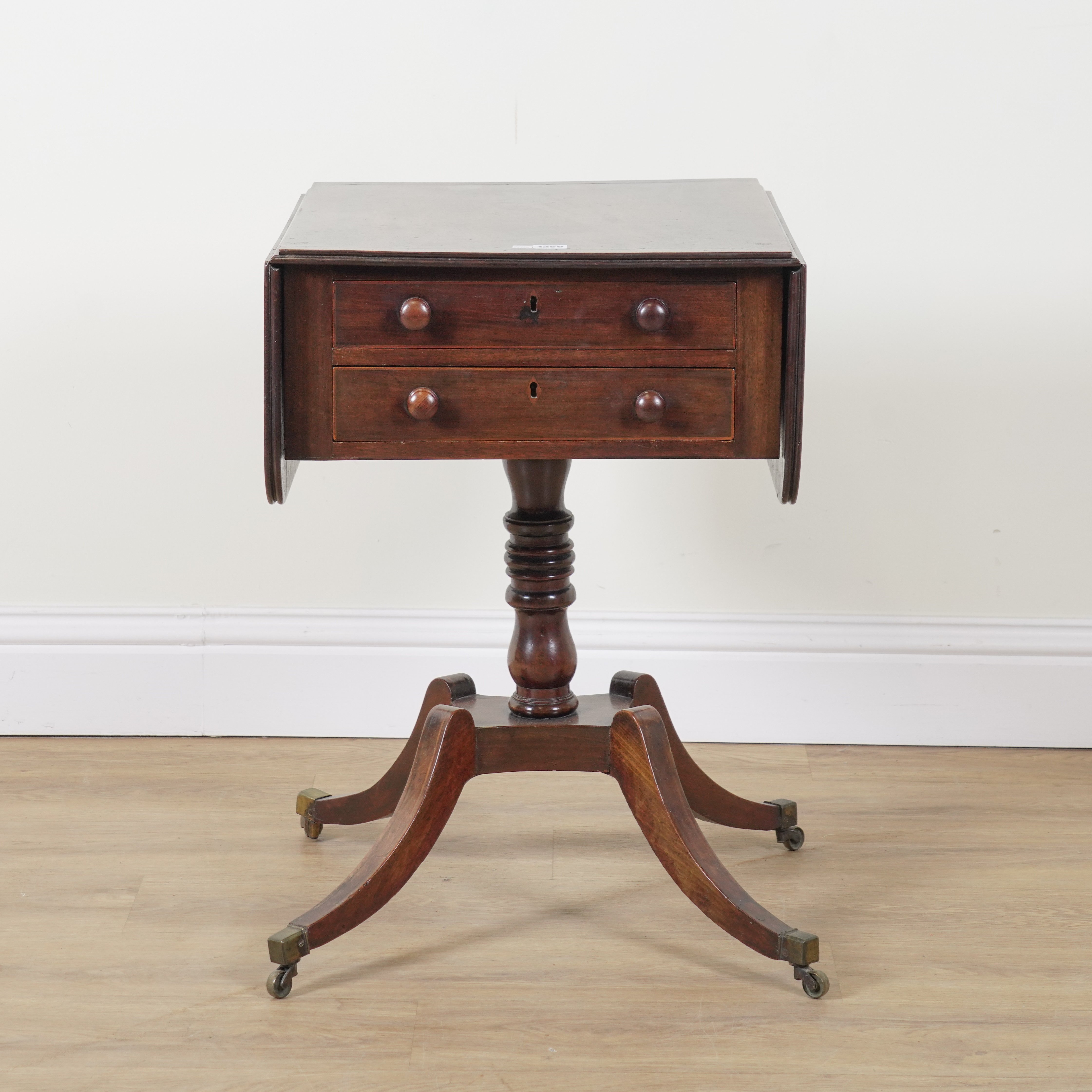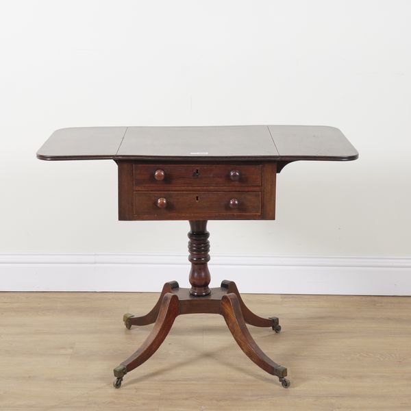 A GEORGE III MAHOGANY TWO DRAWER DROP FLAP WORK TABLE