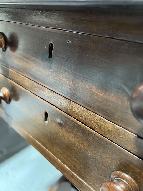 old marks and scratches to the top, small section of veneer just starting to lift to drawer front, see images, signs of old repairs to the end of supports,