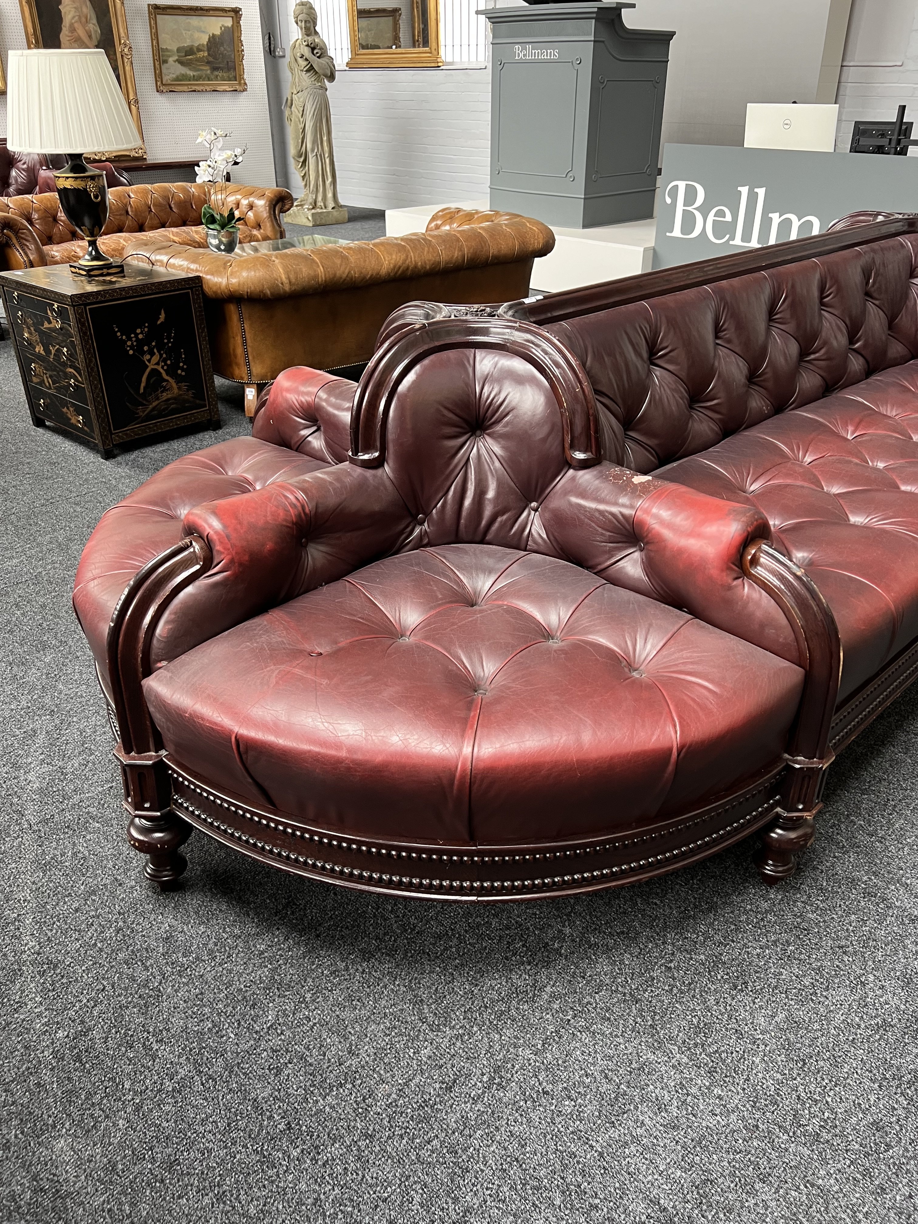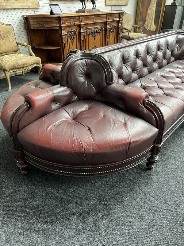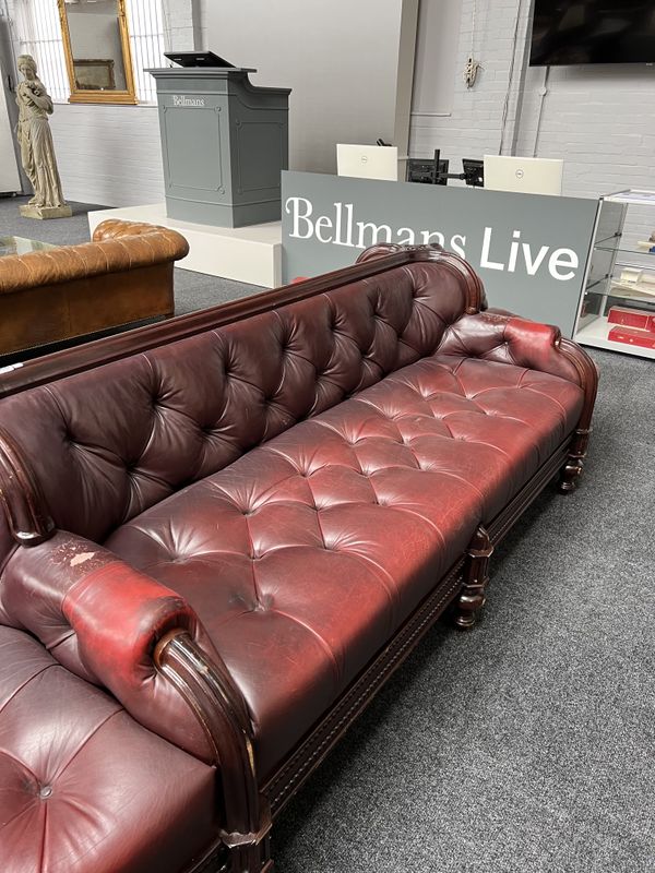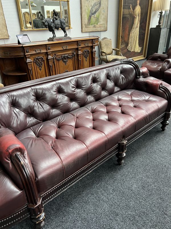 With button back, fluted frieze and turned supports, 352cm long; 162cm deep; 90cm high