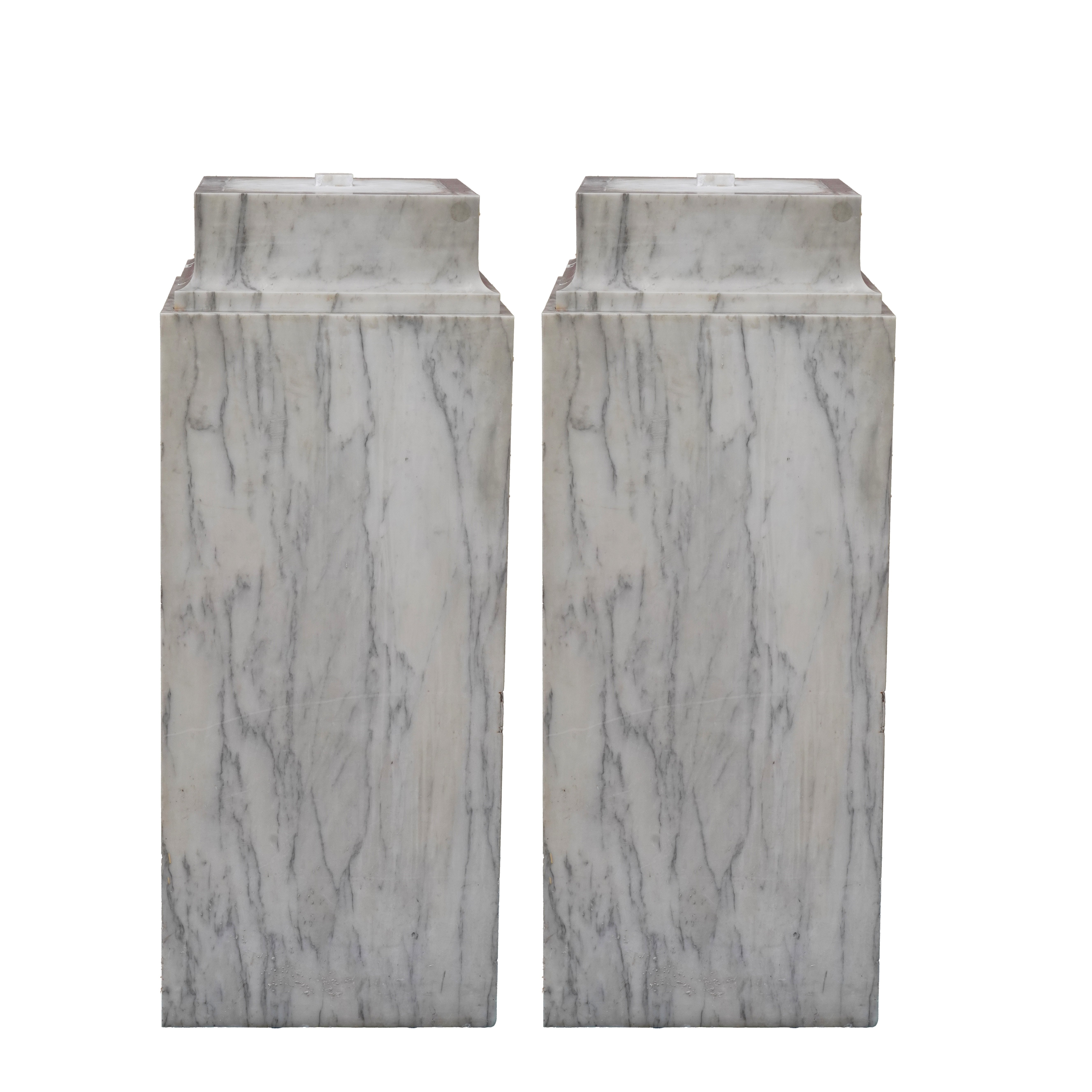 A PAIR OF 20TH CENTURY SOLID MARBLE STEPPED SQUARE PEDESTALS (2)