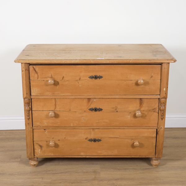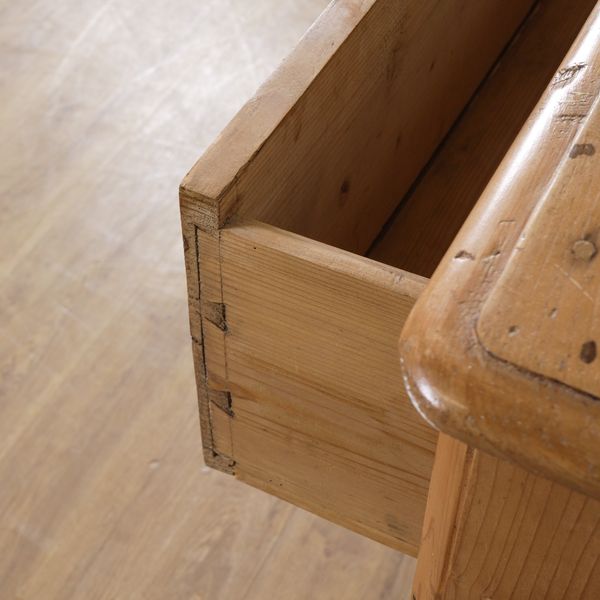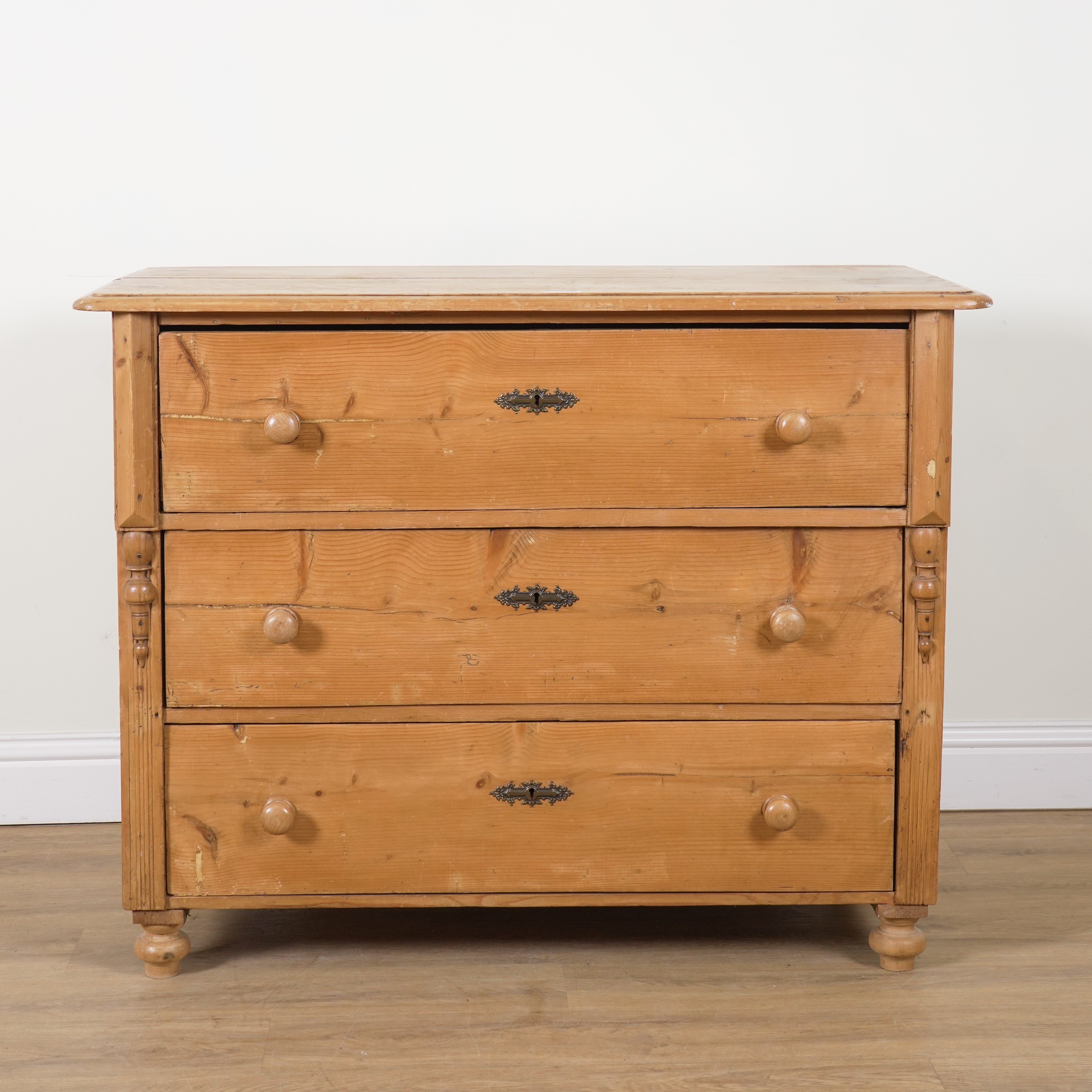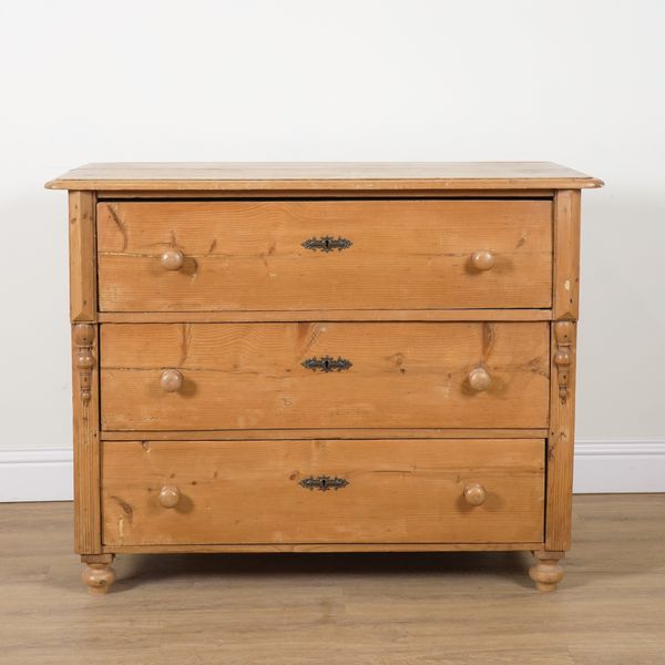 With three long drawers on bun feet, 124cm wide; 58cm deep; 97cm high