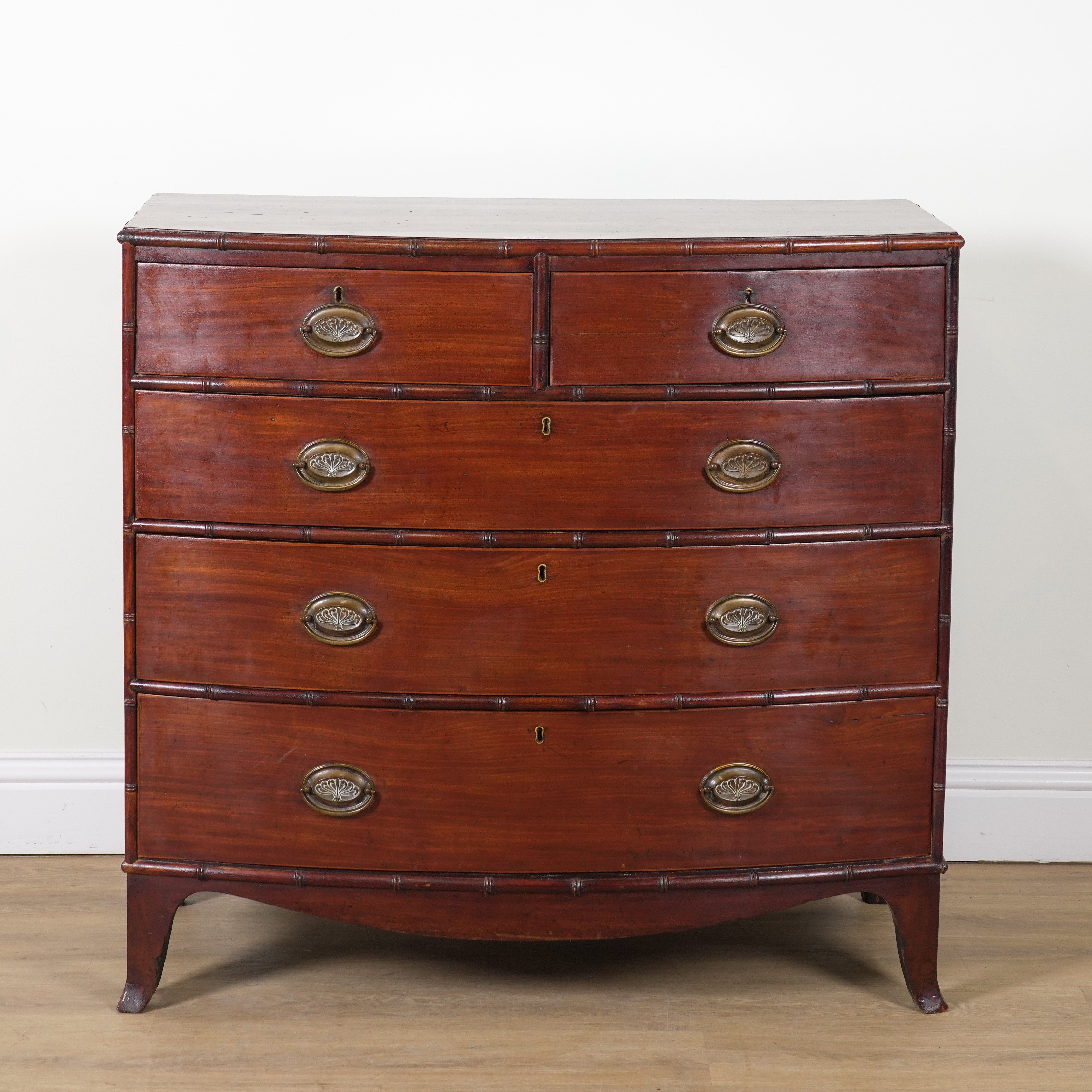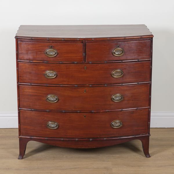 A 19TH CENTURY AND LATER MAHOGANY BOWFRONT CHEST OF DRAWERS
