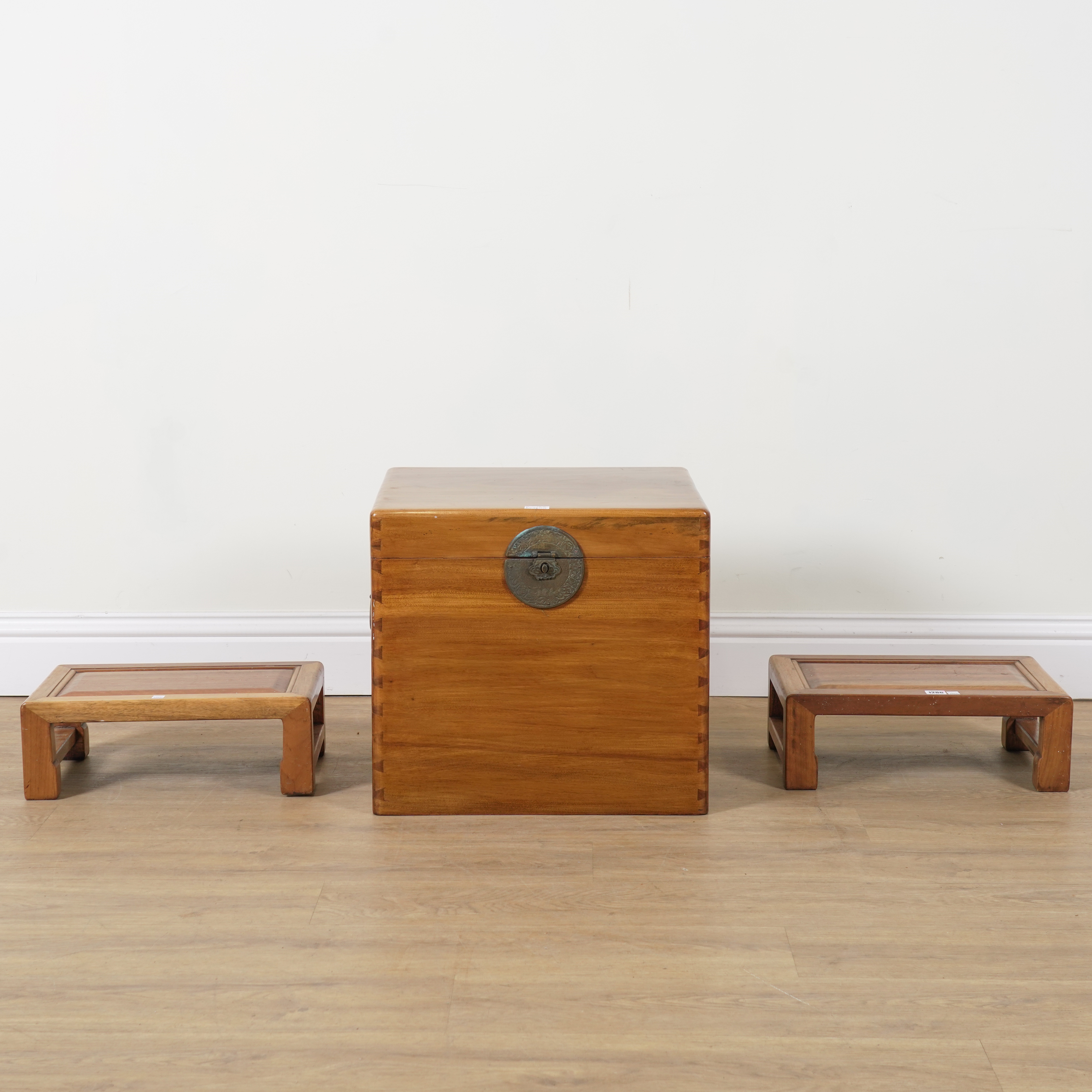 45cm wide; 28cm deep; 16cm high, together with a 20th century Chinese camphor wood square trunk, 51cm wide; 56cm deep; 47cm high