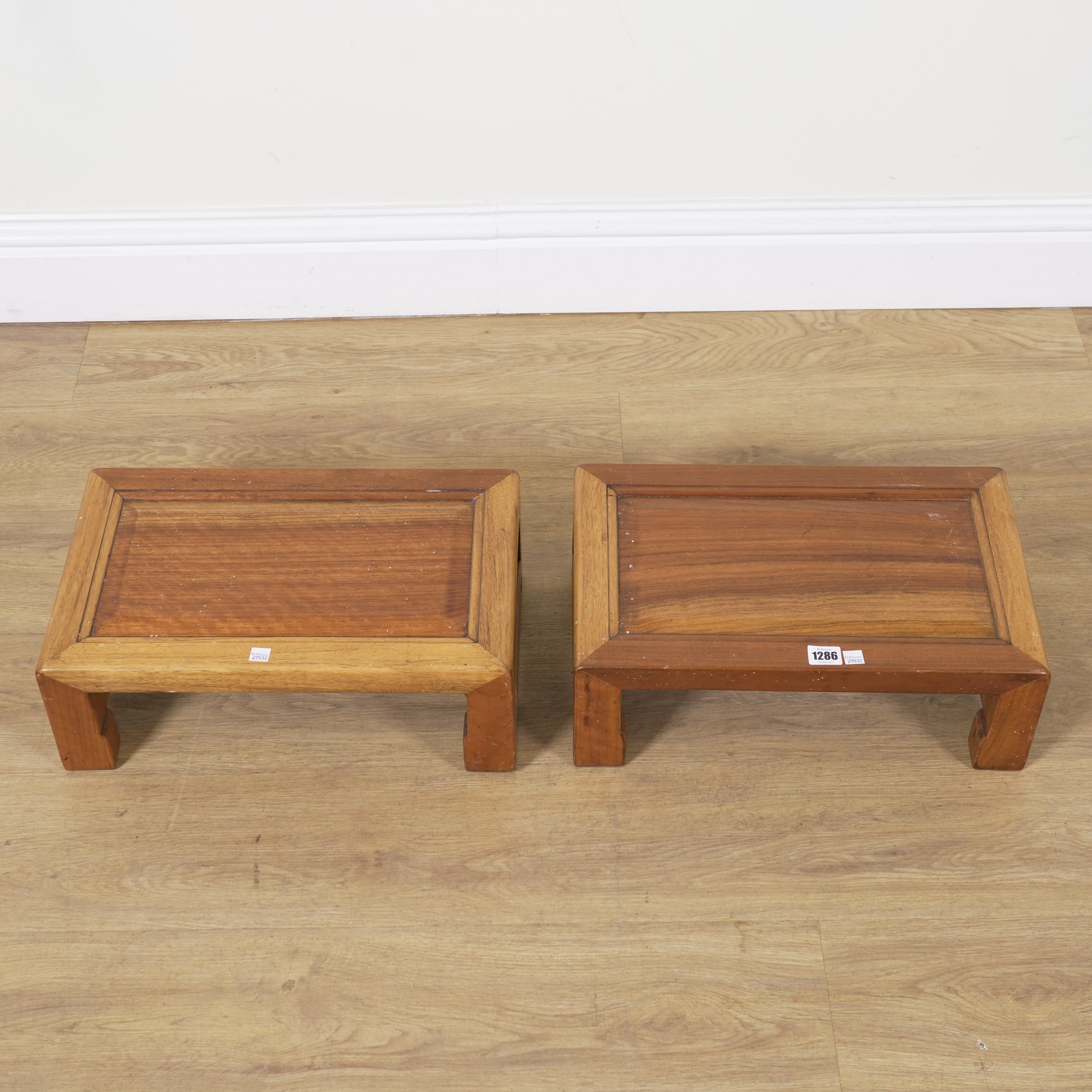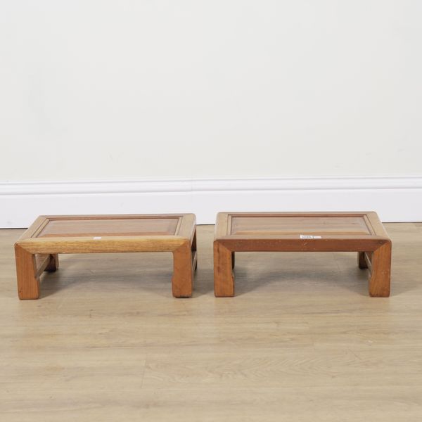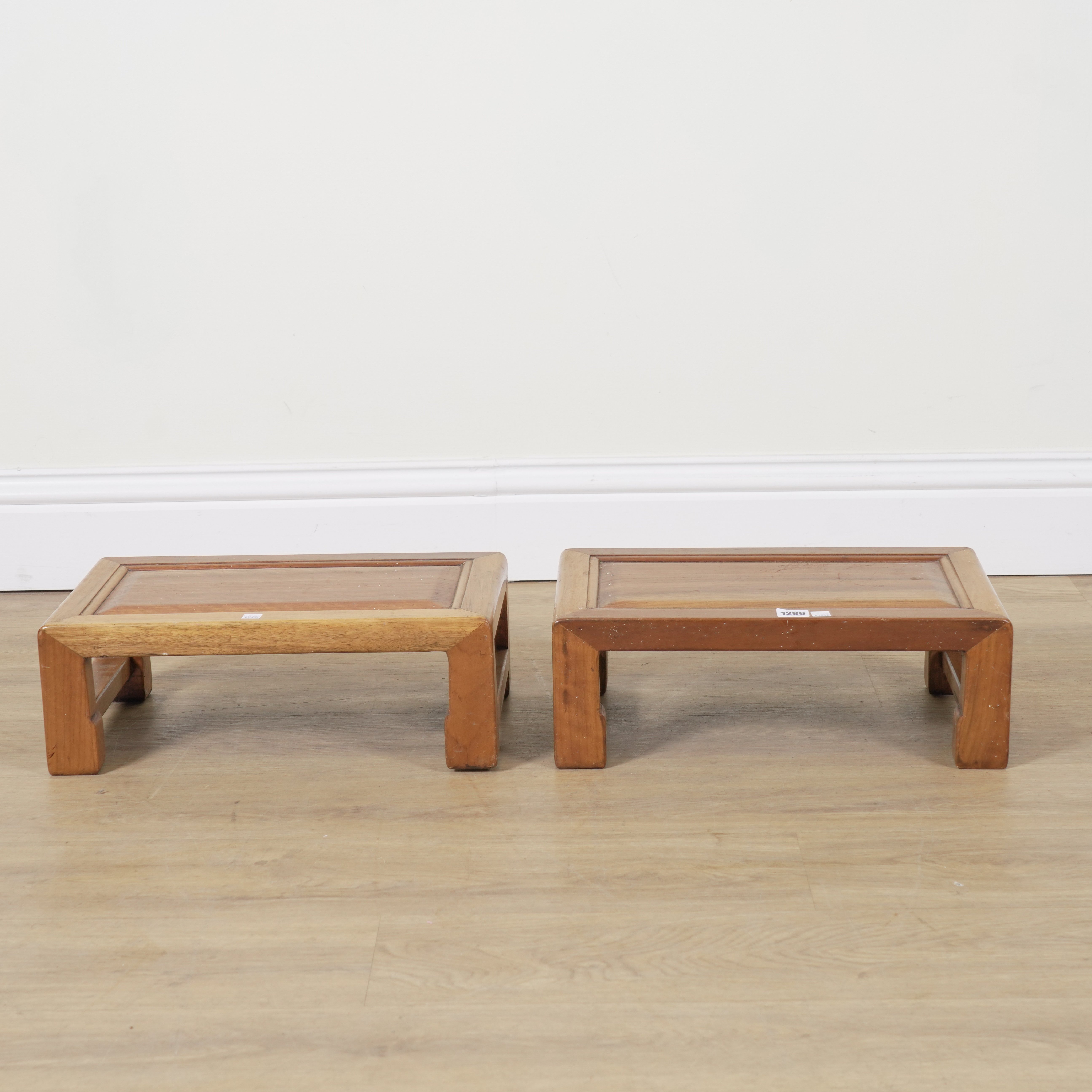 A PAIR OF EARLY 20TH CENTURY CHINESE EXPORT HARDWOOD RECTANGULAR BONSAI STANDS (3)