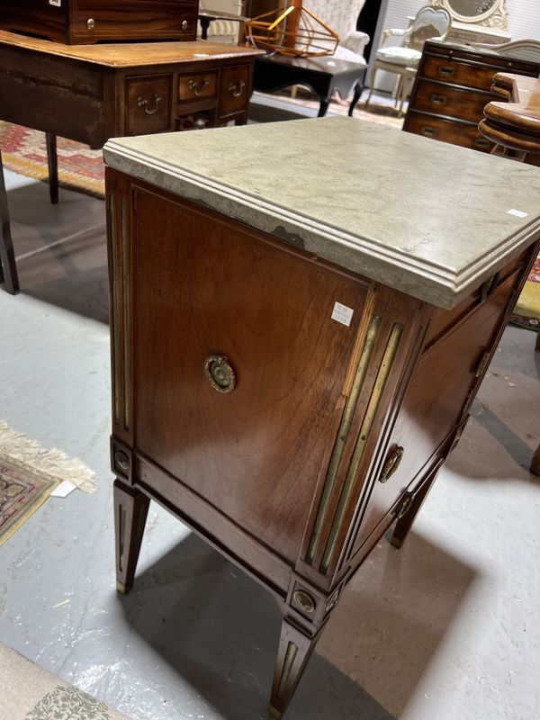 96cm wide; 49cm deep; 78cm high, together with a 19th century Swedish gilt metal mounted marble topped mahogany commode, 48cm wide; 37cm deep; 73cm high