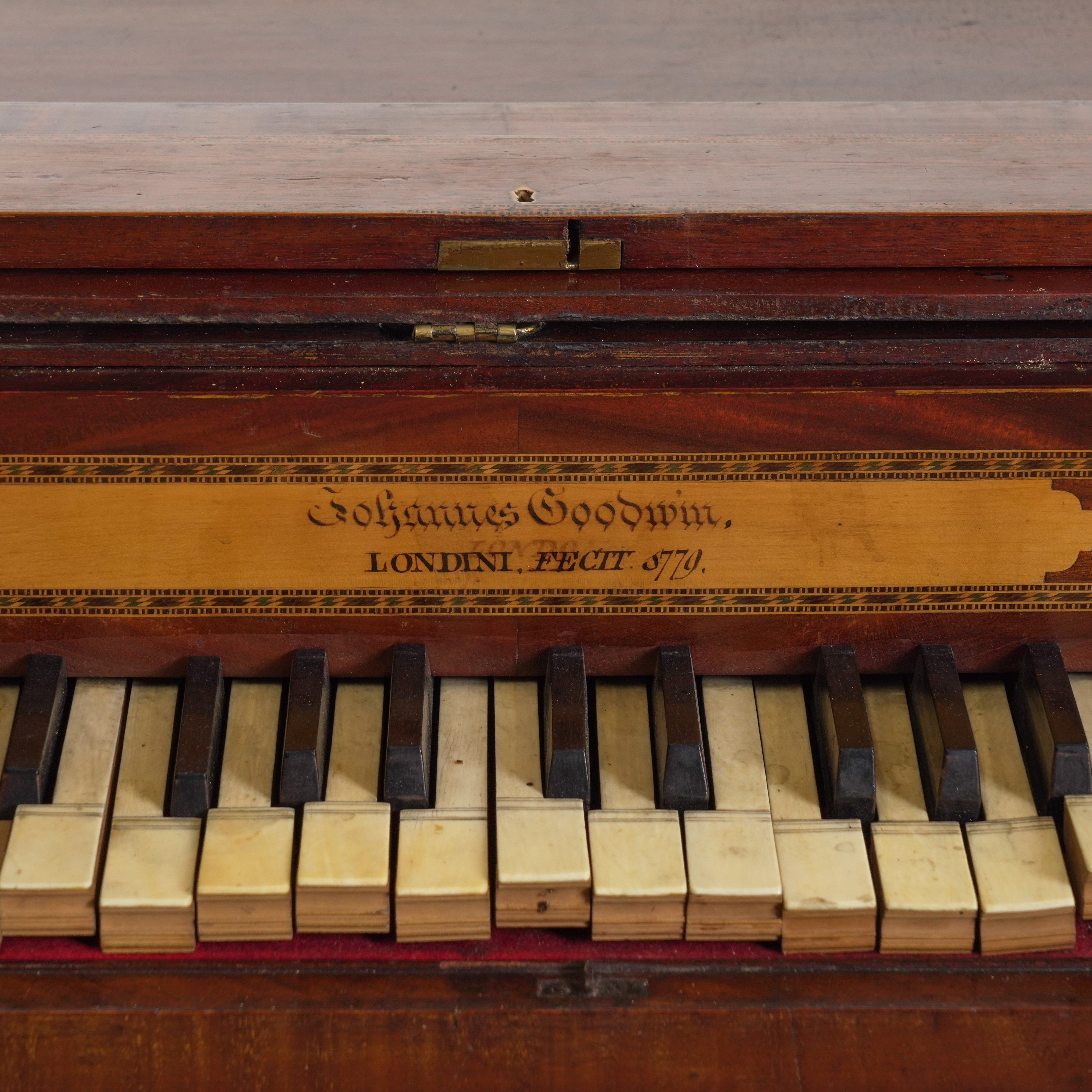 FOLJANNES GOODWIN LONDON 1779; AN 18TH CENTURY MAHOGANY INLAID SPINET ON STAND
