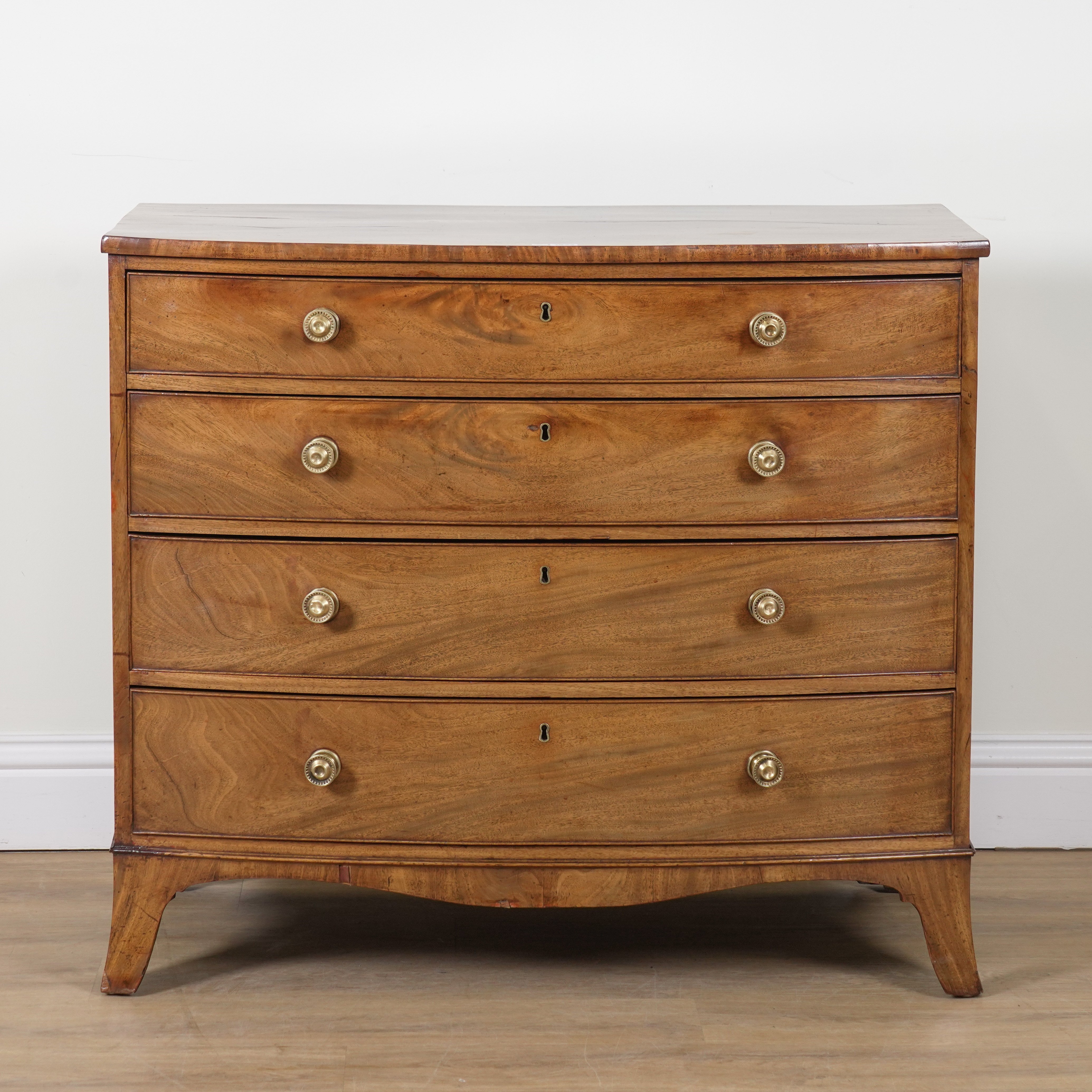 A REGENCY MAHOGANY BOWFRONT CHEST OF DRAWERS