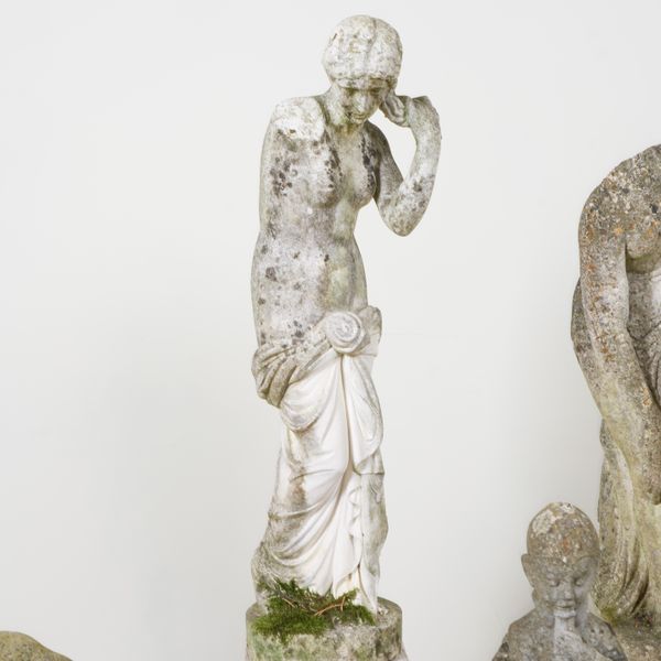A GROUP OF TWELVE RECONSTITUTED STONE FIGURES (12)
