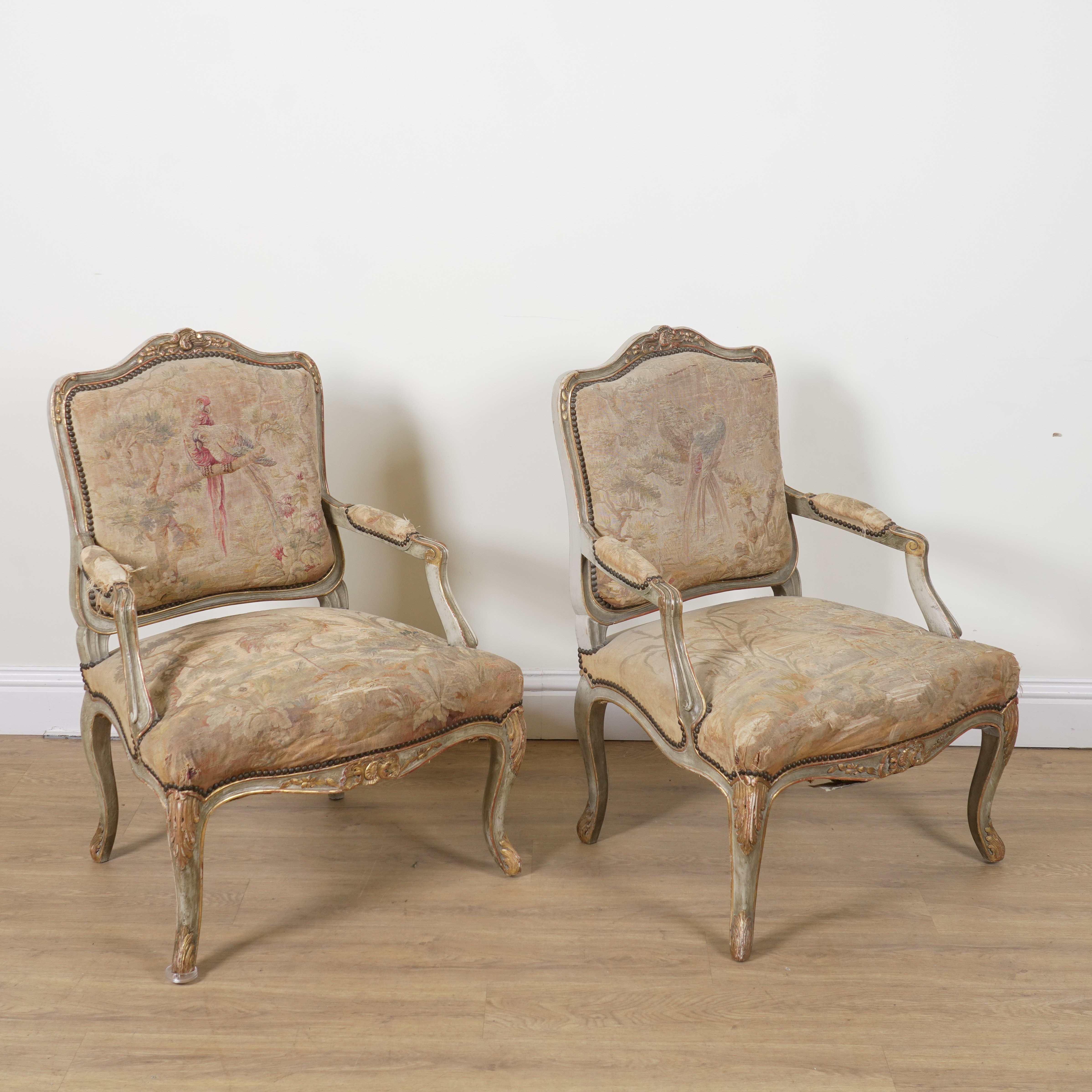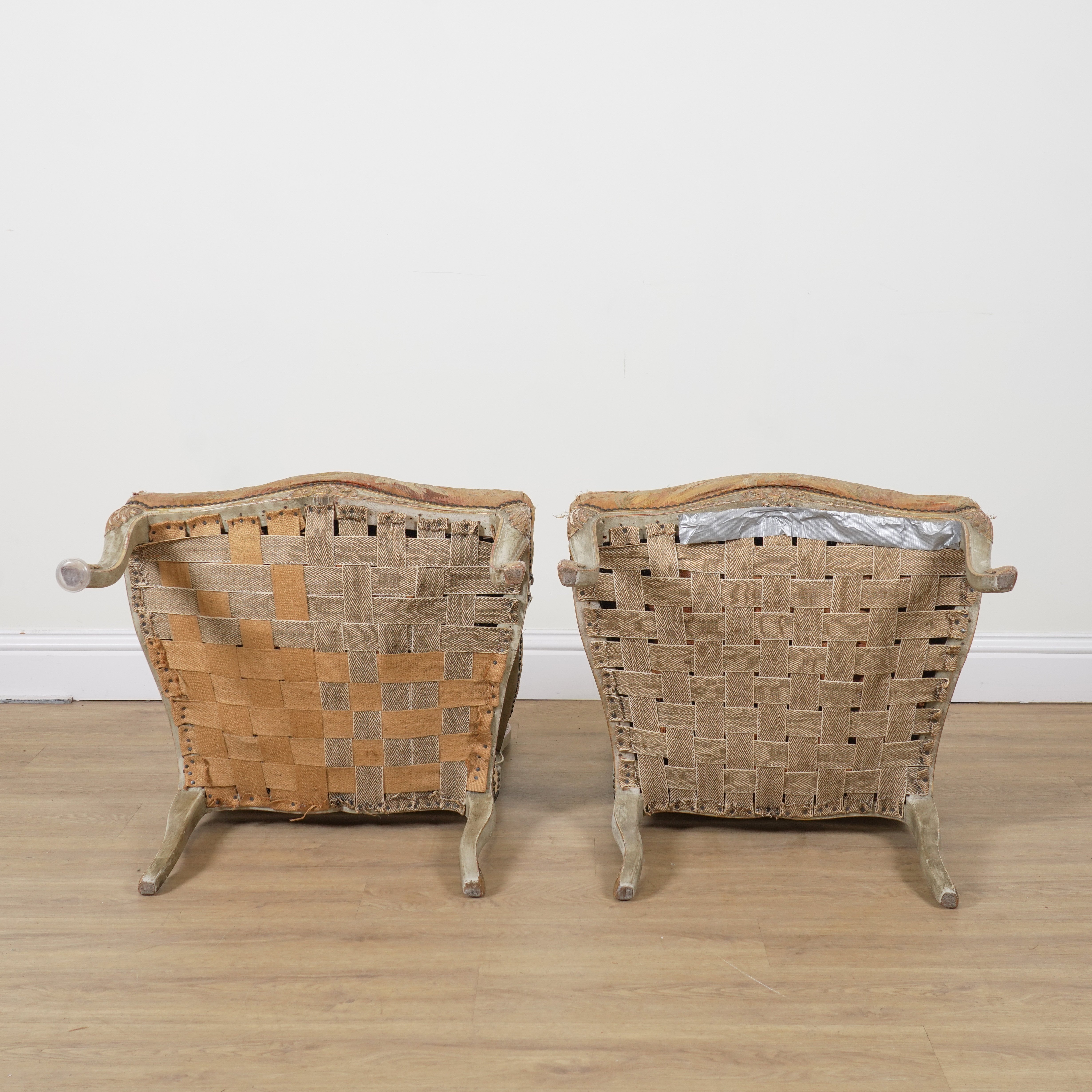 20th century, with tapestry upholstered seats, 70cm wide; 97cm high