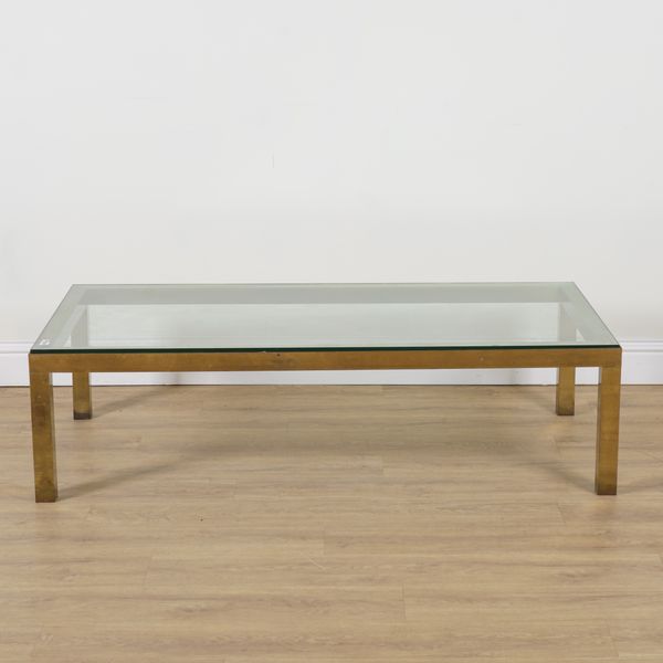 A BRASS AND GLASS RECTANGULAR COFFEE TABLE