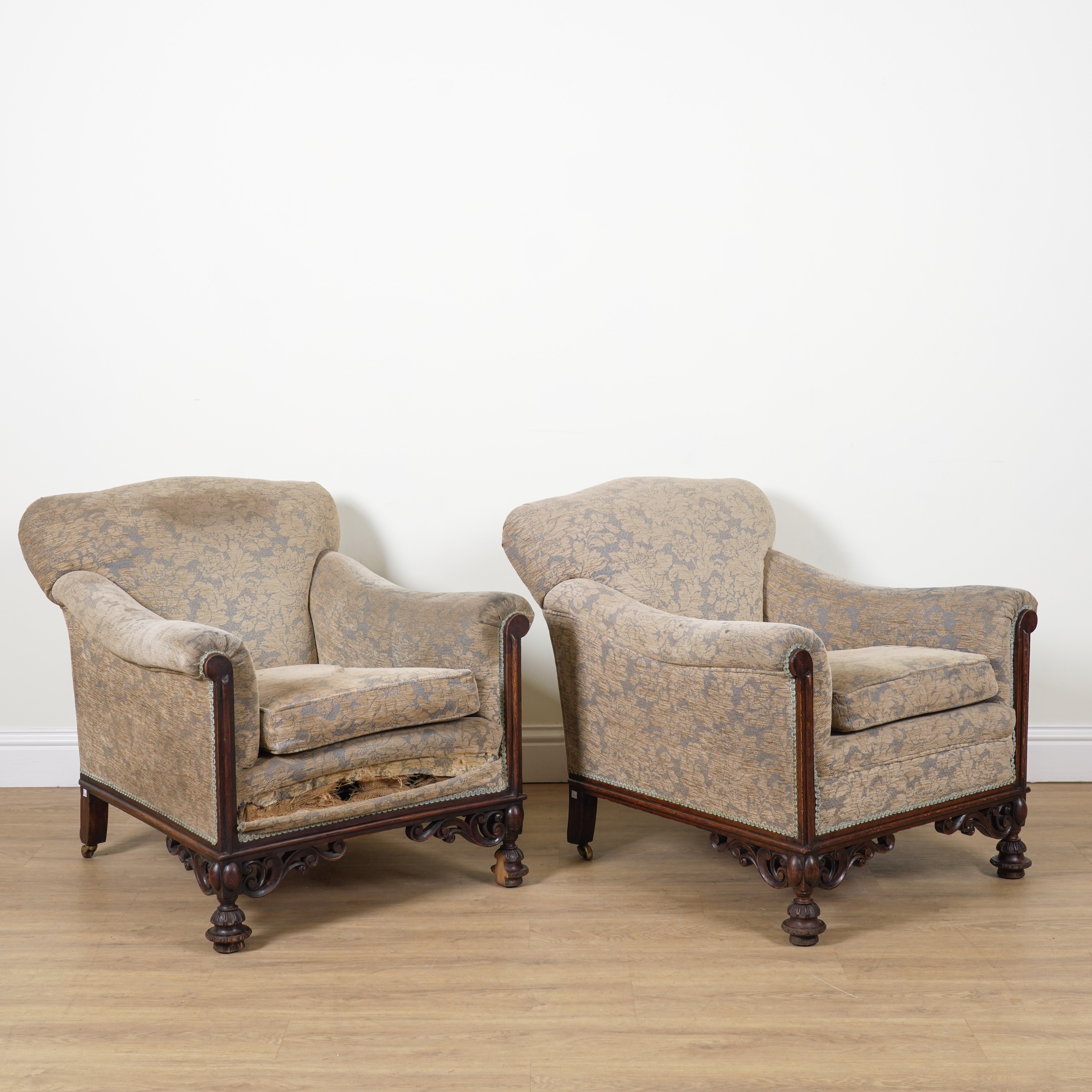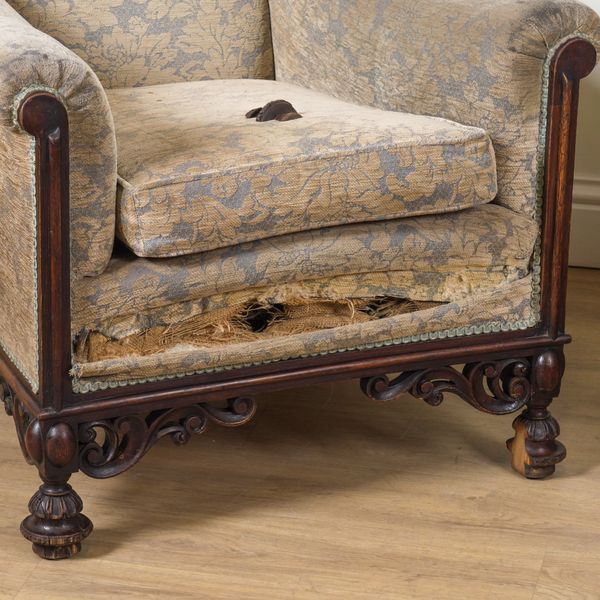 A 19TH CENTURY OAK FRAMED THREE PEICE SUITE (3)