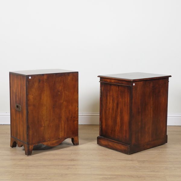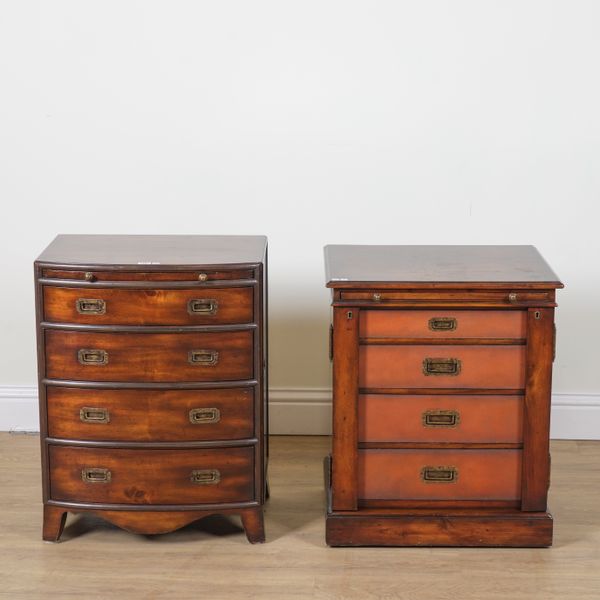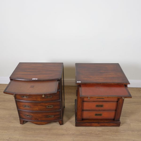 A CAMPAIGN STYLE MAHOGANY BOWFRONT SIDE CHEST (2)