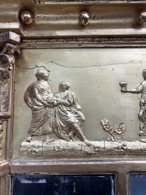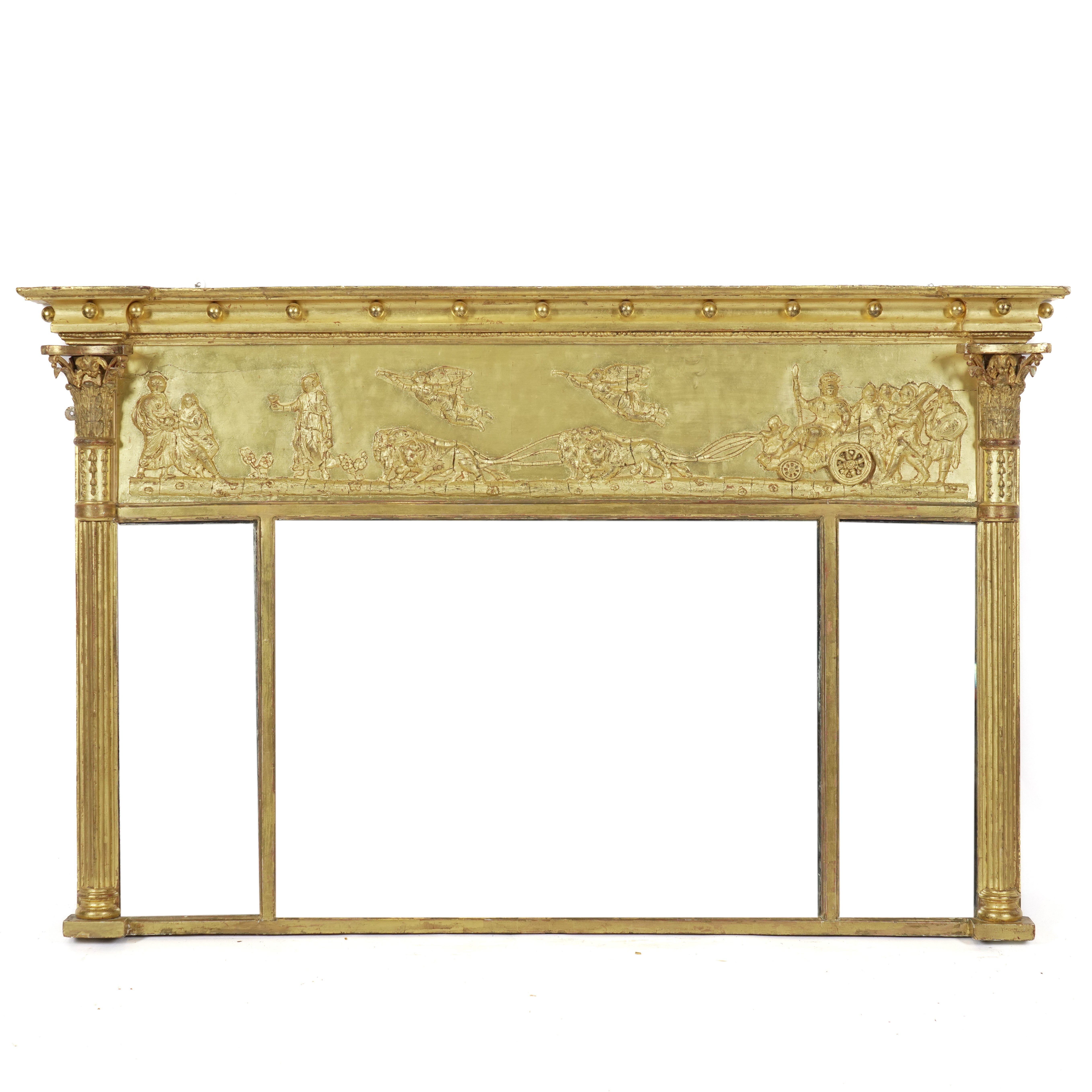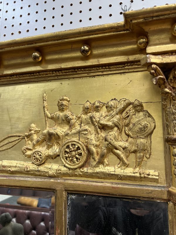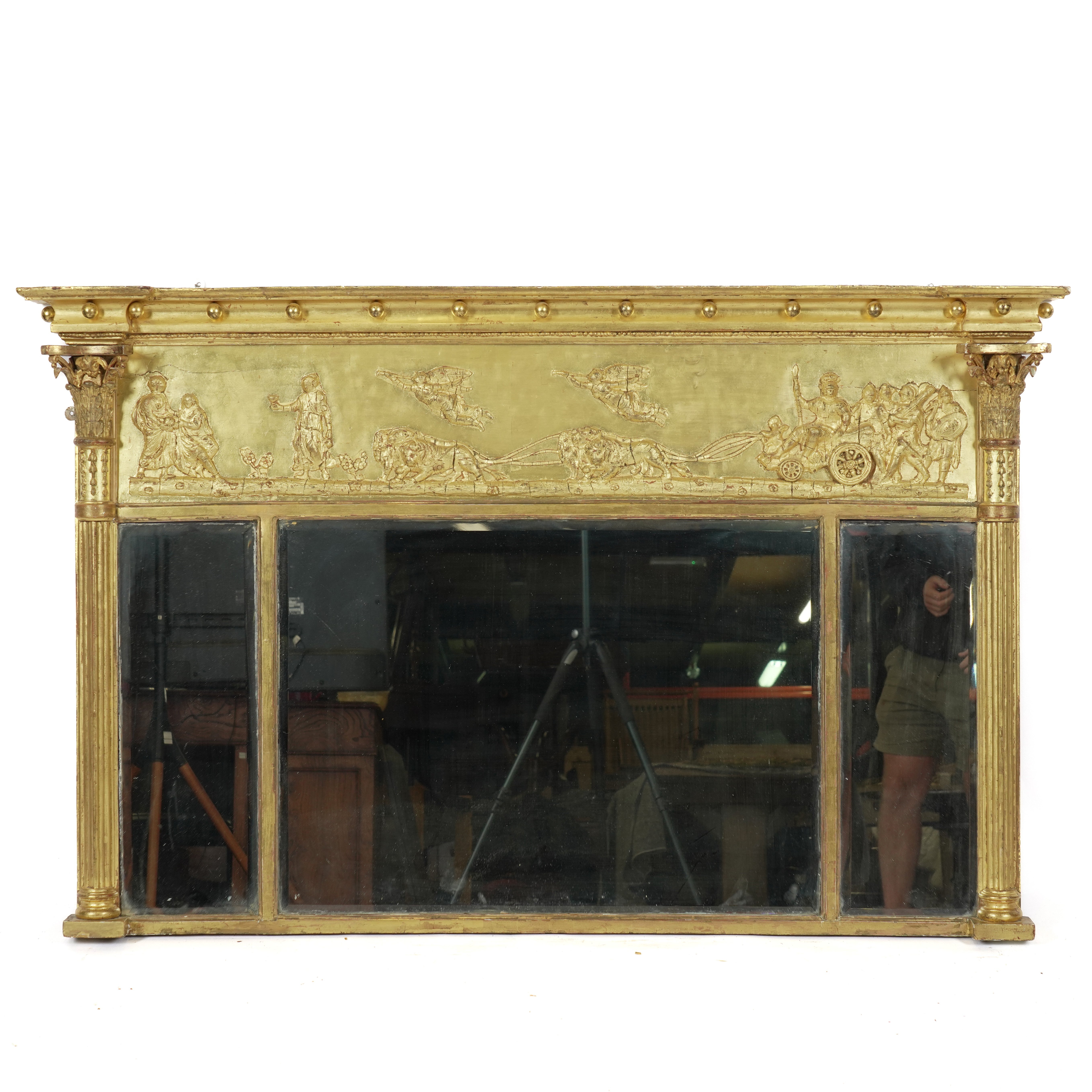 A REGENCY GILT FRAMED TRIPLE PLATE OVERMANTEL MIRROR