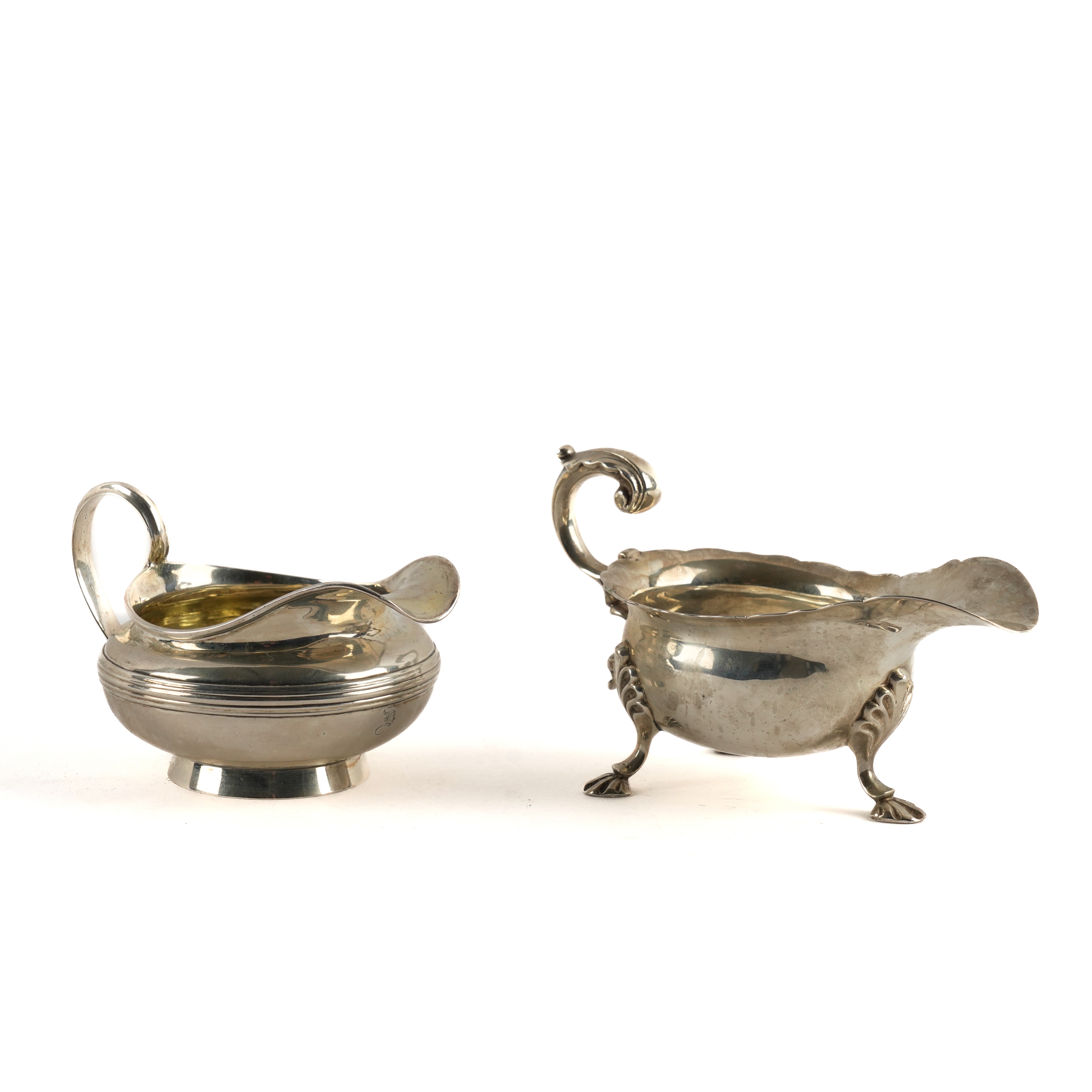 A SILVER MILK JUG AND A SILVER SAUCEBOAT (2)