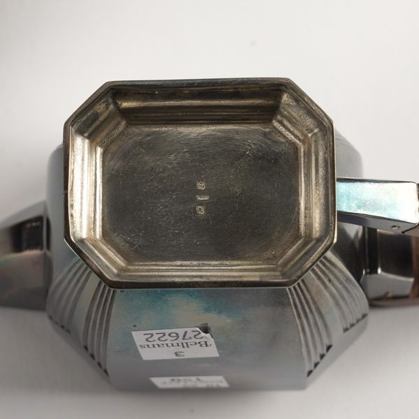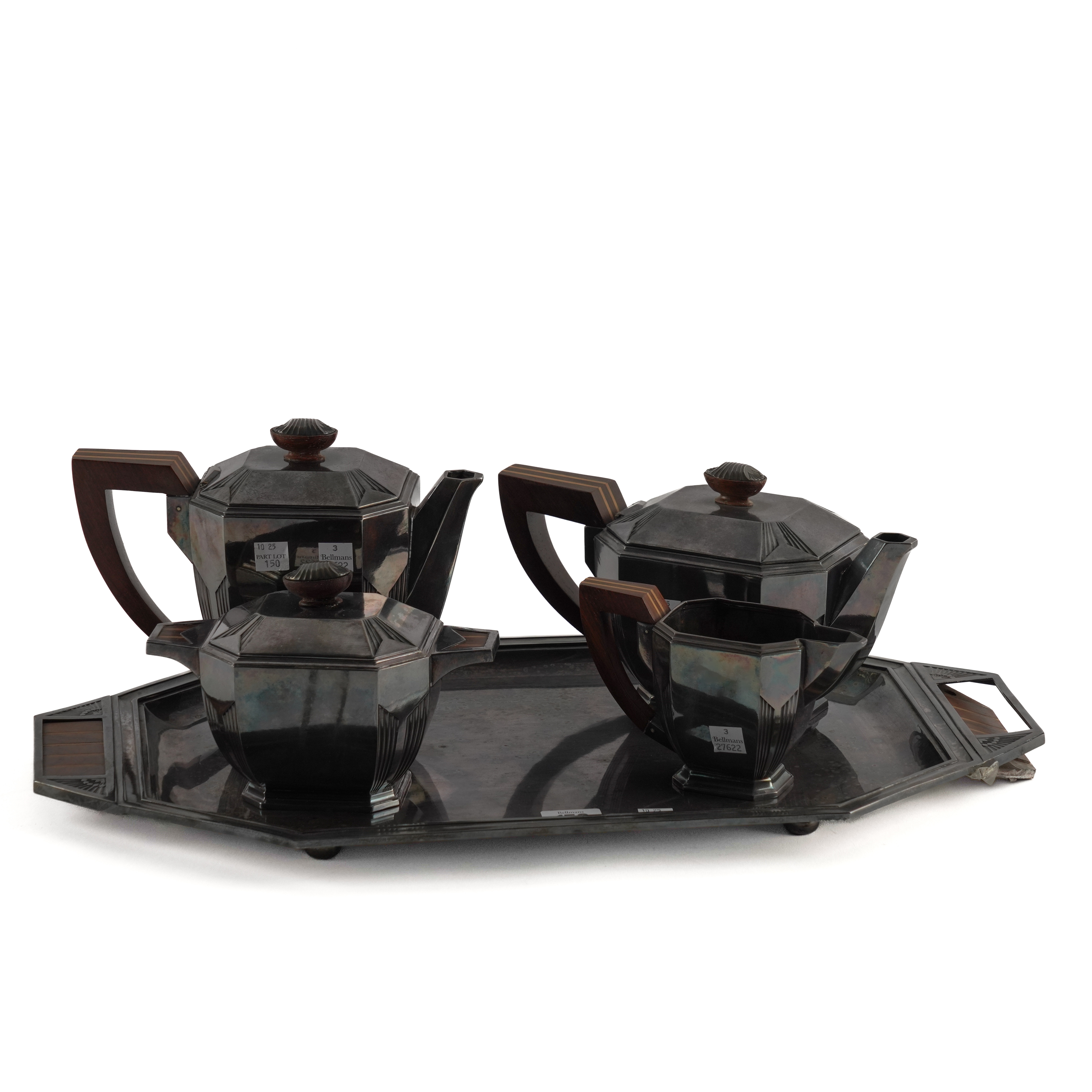 A EUROPEAN FIVE PIECE PLATED ART DECO TEA SET (5)