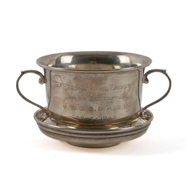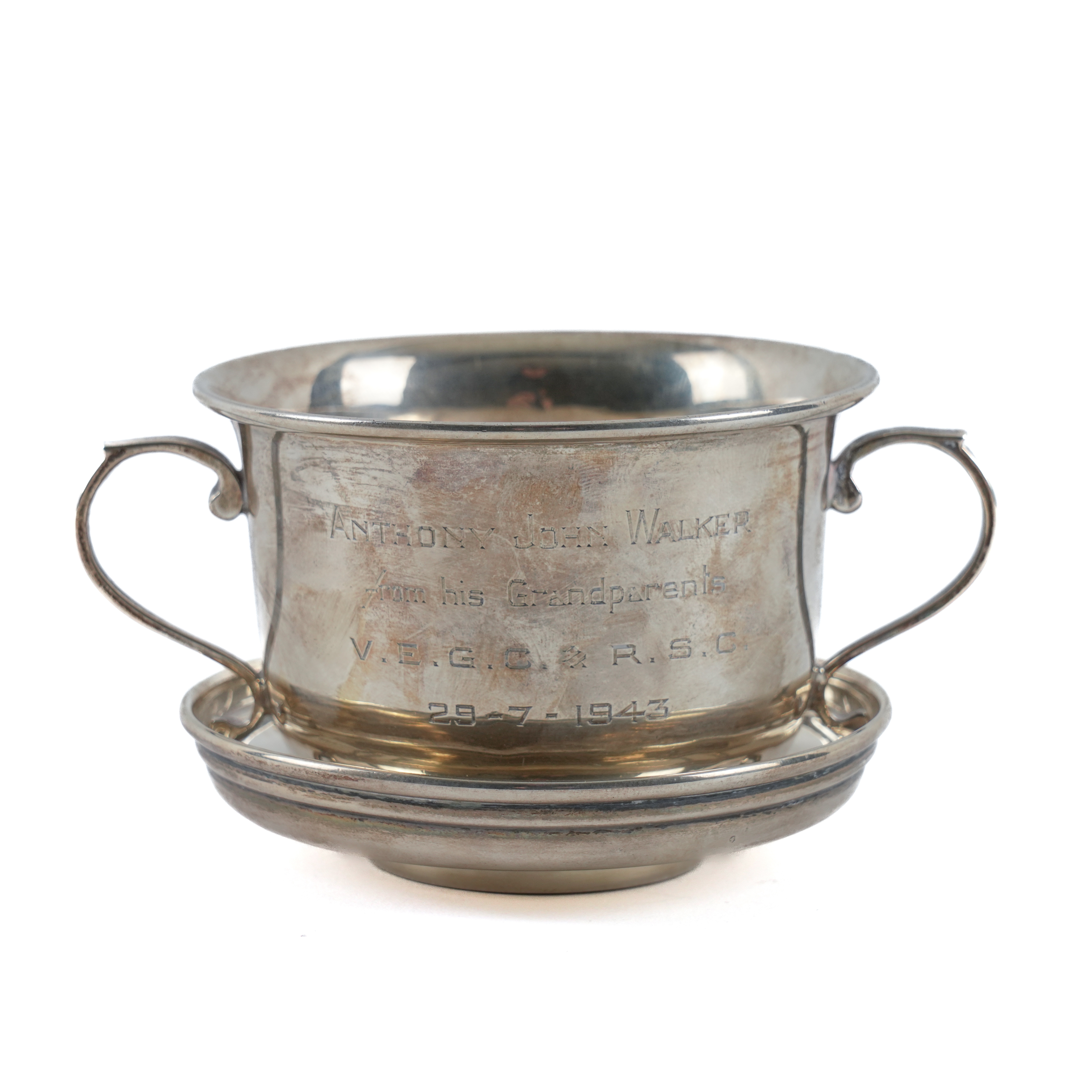 Presentation inscribed, diameter of saucer 9.1cms, Birmingham 1937, combined weight 138 grams
