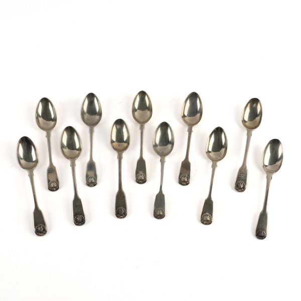 A SET OF SIX SILVER TEASPOONS AND FIVE FURTHER SILVER TEASPOONS (11)